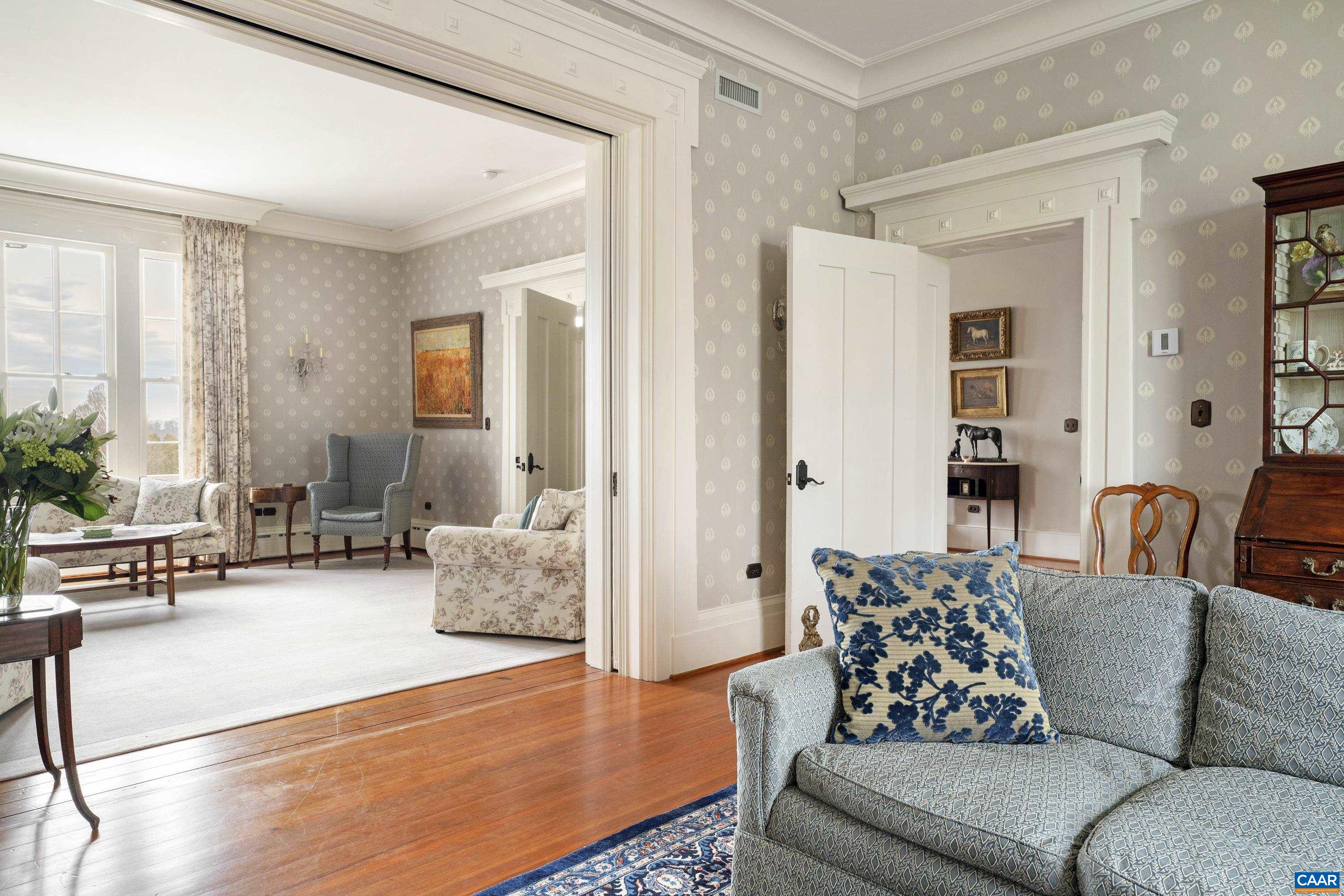One of the State’s finest examples of Classical Revival/Neoclassical architecture, sited on 716-acres of rolling, highly productive crop land and pasture land with nearly 1.5 miles of frontage on the Rapidan River. The home is instantly recognizable with its 4 massive Doric columns and “M” shaped copper roof. Built in 1854, the well-proportioned residence with 11+ foot ceilings was meticulously restored by high-end contractor, Alexander Nicholson, to its present condition. The restoration kept the original doors, mantels, woodwork, and most of the heart pine floors intact. Listed on the National Register and VA Landmarks Register. The Rapidan River and its lowlands offer endless recreation including canoeing/kayaking, fishing and some of the area’s best duck hunting (enhanced by duck impoundment pond). Additional improvements include a restored, period summer kitchen/office, guest cottage, conservatory, pool and pool house, stables, managers cottage and farm infrastructure.
