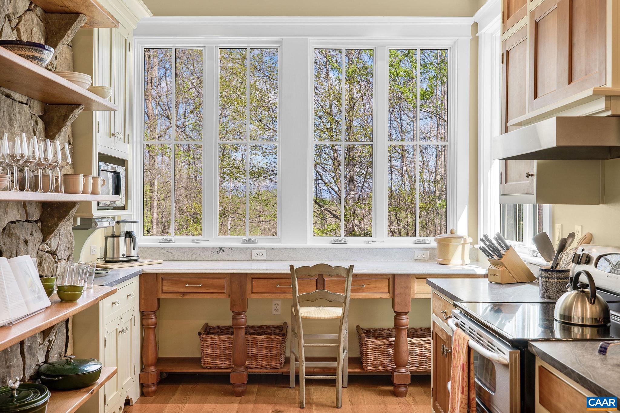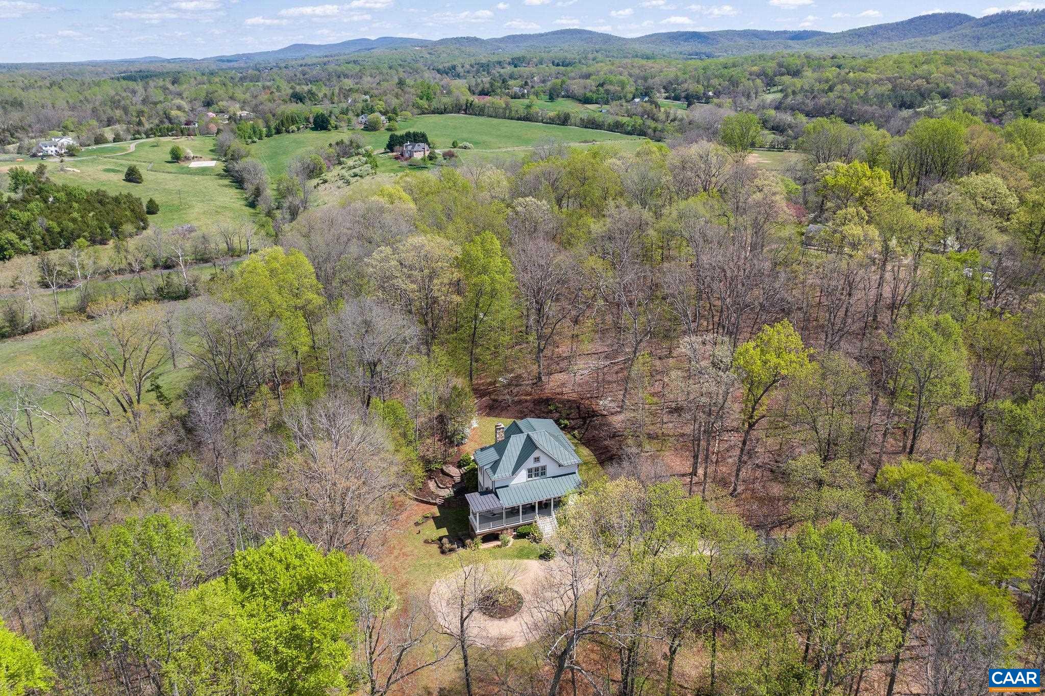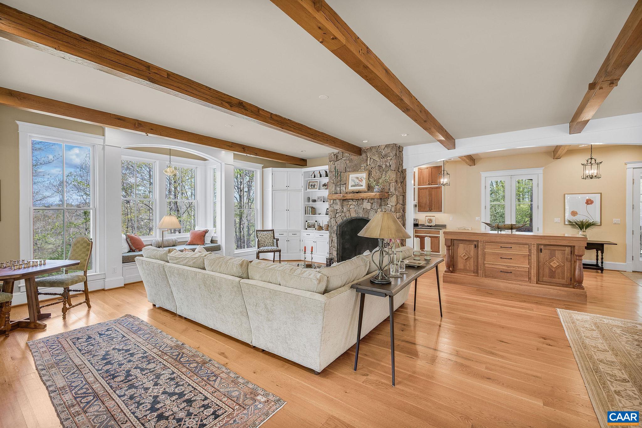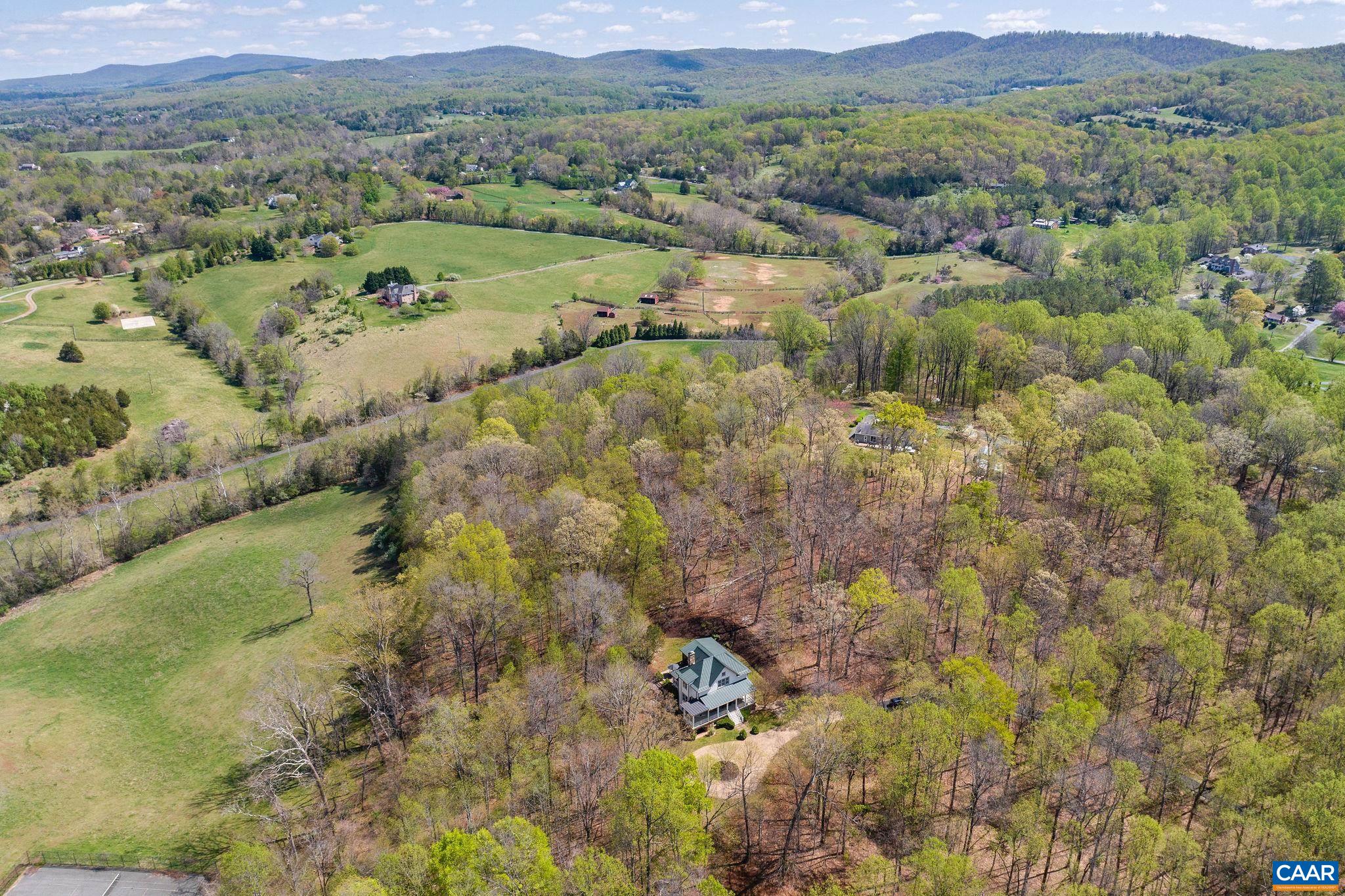 Sited on over 23 exceptionally private acres with mountain views, this Peter Johnson built, quintessential Virginia farmhouse perfectly captures today's taste for bright, open living spaces warmed by striking accents that create a sophisticated, yet cozy feel. Step inside & prepare to be wowed by beautiful hardwood floors milled from trees from the property, stunning ceiling beams recovered from a Pennsylvania bank barn, and a handsome reclaimed wood and soapstone island that is the centerpiece of the kitchen. Floor to ceiling windows flood the home with natural light, while a dramatic stone Rumford fireplace in the great room offers a focal point for family gatherings. The idyllic setting is highlighted by brick and stone walls and patios, and multiple outdoor spaces for enjoying the solitude. Though current owners have enjoyed this property as a relaxing getaway their intention had always been to add a primary suite for more permanent living. All systems, including septic and geothermal HVAC, are sized to accommodate an addition. Built to exacting standards & meticulously maintained, this stunning property is just 20 min. to C'ville airport, 15 min. to Downtown Cville, Martha Jefferson & UVA Hospitals, & UVA Grounds.