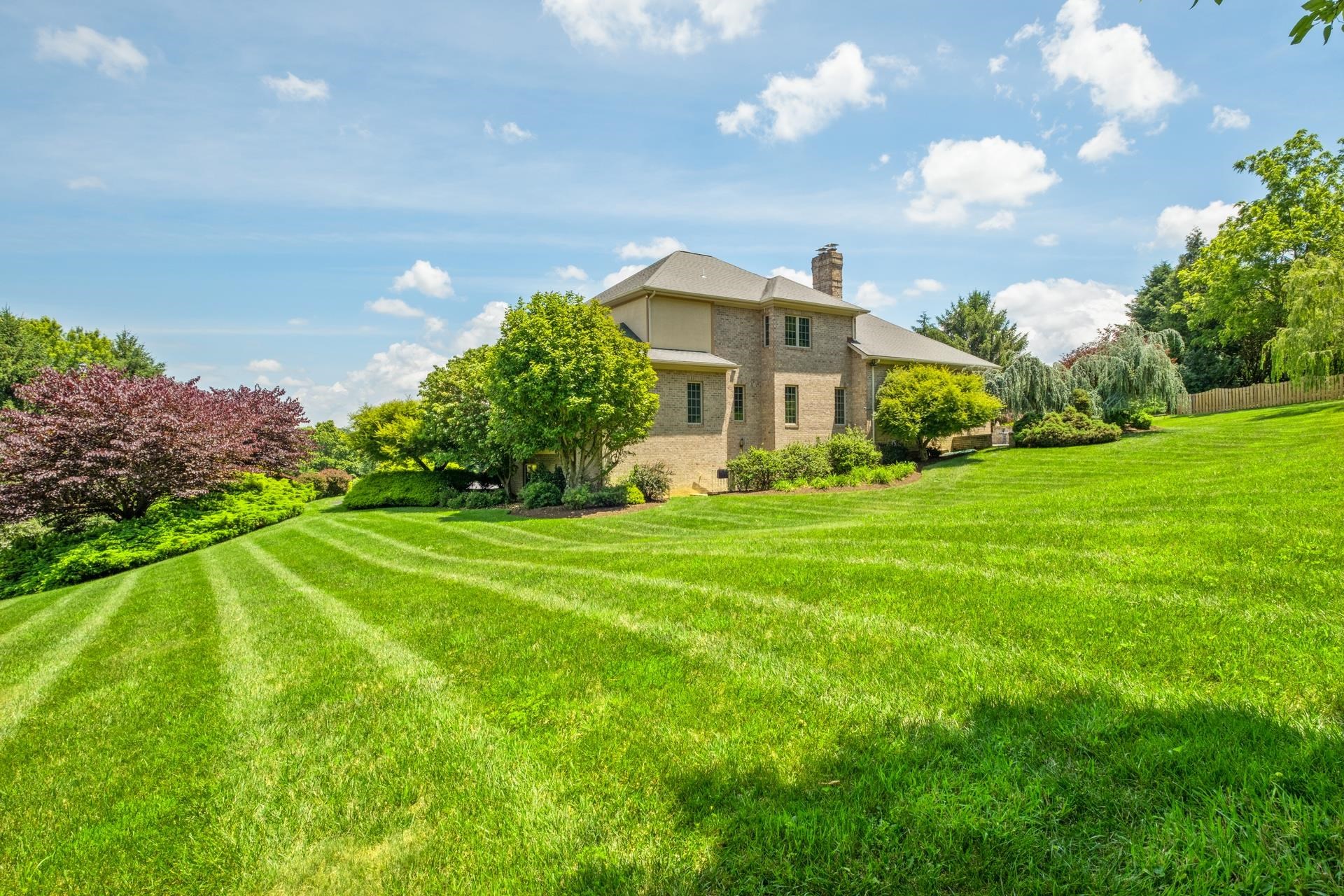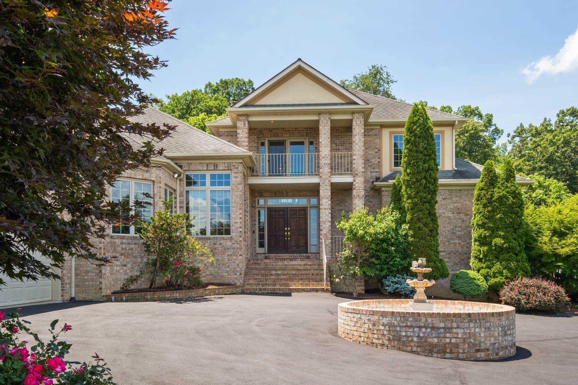 Welcome to 3417 Lake Pointe Drive! This stunning, custom-built Crummet all-brick home is nestled on one of the largest, most desirable lots in the Lake Pointe Subdivision. Featuring a brick entrance, circular driveway, three-car garage, patio, irrigation system, and mountain views, it offers privacy and beauty. Inside, a grand French door entry reveals soaring ceilings, a floating staircase, tile floors, a walk-in coat closet, and a custom mural. The updated kitchen boasts granite countertops, stainless steel appliances, a gas range, and cherry cabinets. Enjoy a sunroom, living room with a fireplace and brick wall, elegant dining room with crown molding and columns, and a library/office with built-ins and a fireplace—possible 6th bedroom. Two bedrooms and two full baths are on the main level. Upstairs is a private suite with balcony, walk-in closet, soaking tub, dual vanities, and tile shower. The walkout basement includes a bar, rec room, stone fireplace, two bedrooms, and a full bath. Over 6,500 finished sq ft and three-zone HVAC— close drive to JMU and RMH. This is a must see!