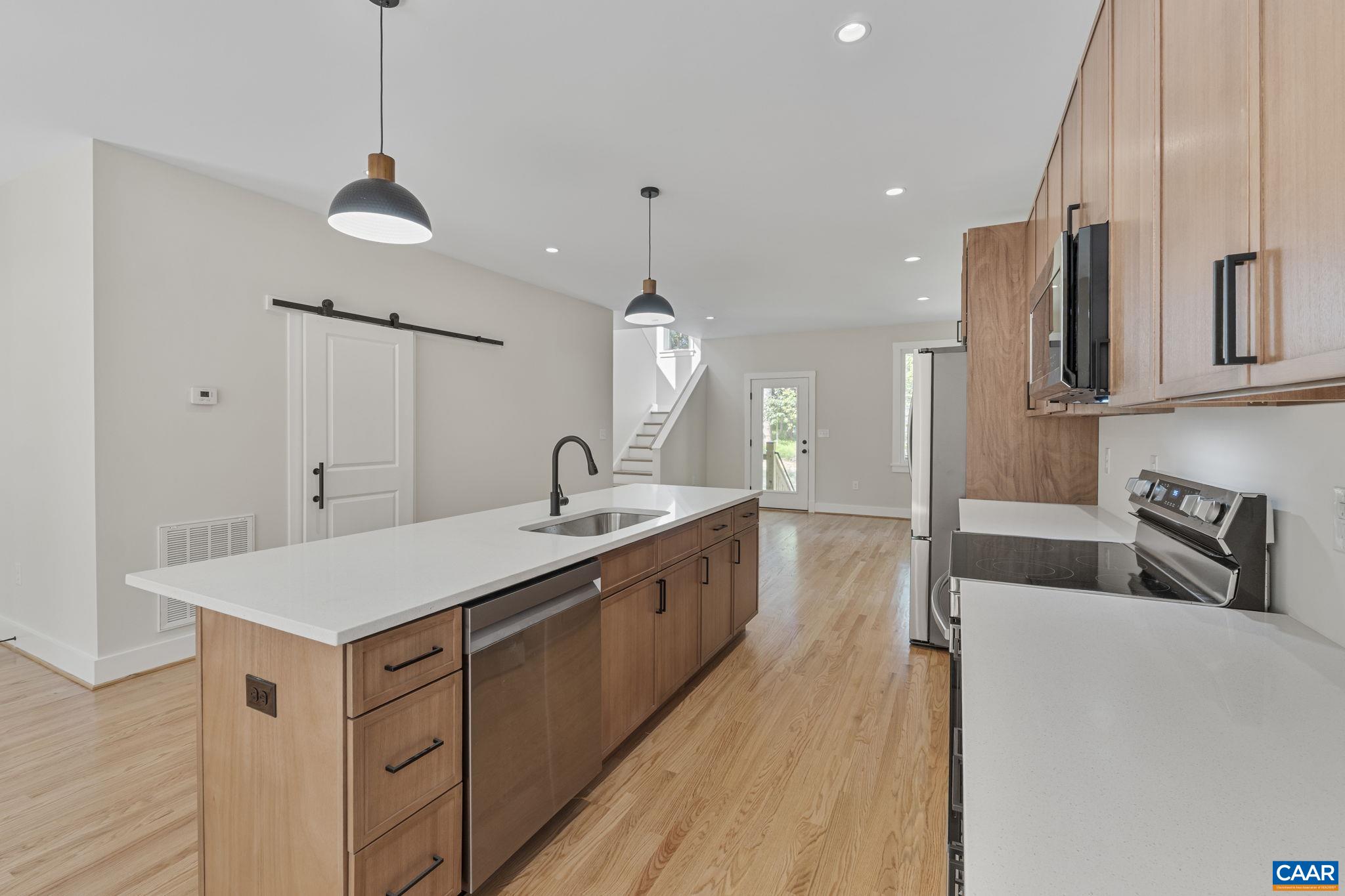 This exceptional custom three-bedroom, two-bath residence is designed for modern living. The spacious, open-concept family dining area seamlessly connects to a gourmet kitchen featuring high-quality wood cabinets, quartz countertops, and a large island that's perfect for entertaining. Enjoy the convenience of an extra-large walk-in pantry and real hardwood tongue-and-groove flooring throughout. The primary suite, which boasts a generous walk-in closet and a luxurious bathroom with dual vanities and a tiled walk-in shower. The additional bathroom offers a stylish tiled tub-shower combination and tiled floor. Family room on the lower level. This home showcases exquisite custom trim and features, offering the same high-end amenities as homes priced significantly higher. Located in the desirable Lake Monticello, you'll enjoy easy access to the Turkey Section gate, with grocery stores and other conveniences. Owner/Agent