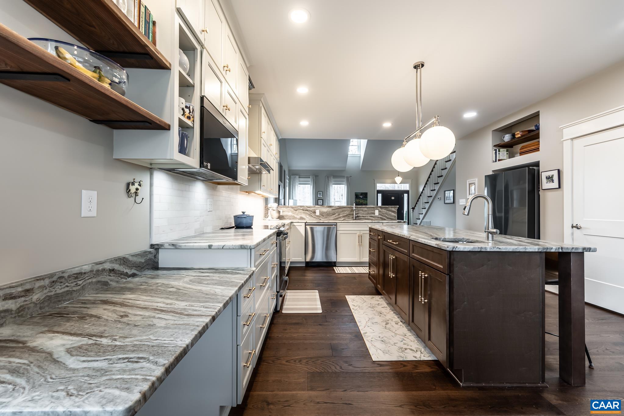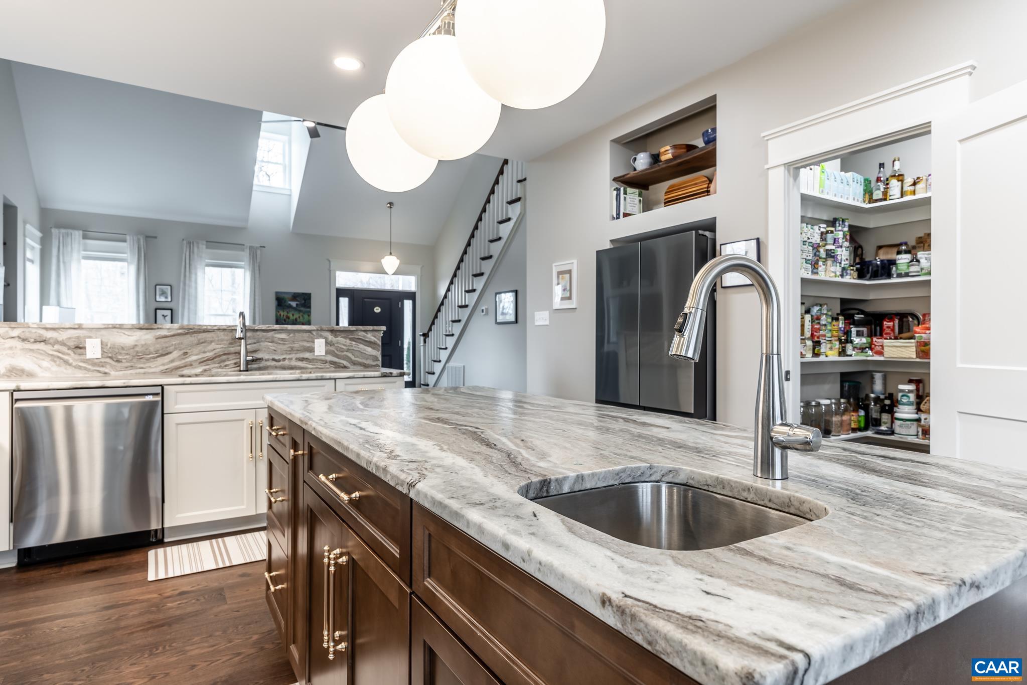 Come see this modern farmhouse in popular Stoney Creek. Entering the light-filled home, notice the gorgeous wide-plank hardwood floors. The chef's kitchen has stunning quartzite countertops, walk-in pantry, large island w/prep sink & roll-out cabinet drawers. The living area includes built-in bookcases made from locally sourced walnut and an electric fireplace. There’s a half bath for guests, too. As a bonus this home has accessible design elements on the 1st floor including 49” wide hallways & 36” doorways. With a 1st floor primary suite, 3 bedrooms & full bath upstairs plus a STUDIO APARTMENT with its own entrance, this home has a lot to offer. The primary suite bath is your own private spa with custom features like a zero-threshold shower, double-sink vanity & alcove with shelving. Enjoy the view from the low-maintenance deck. Gardeners will appreciate all the room to grow in the yard, and there’s plenty of space for entertaining. Each window in the home has a winter mountain view. If you need extra storage there’s a walk-up attic. The list of special features shows the purposeful design & superior materials used to create this one-of-a-kind home. Nestled in the active Stoney Creek neighborhood, amenities are at your doorstep.