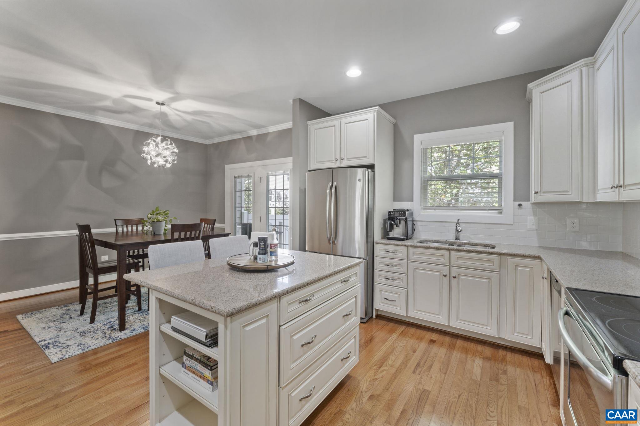 This well-maintained 3-bedroom, 2.5-bath townhome in the Pavilions at Pantops offers style, space, & convenience in a prime Charlottesville location. The main level features hardwood floors, a bright living area, separate dining room overlooking the fenced backyard, & a half bath for guests. The white kitchen shines with expansive granite countertops, an island, & plenty of storage. Upstairs, the spacious primary suite offers two closets, dual vanities, a tile shower, & a private deck with mountain views. Two additional bedrooms share a full hall bath adjacent to the Laundry Room. Enjoy outdoor living with two balcony decks, plus a back deck & HOA maintained yard. The unfinished basement provides excellent storage space & a rough-in for a future bathroom. A one-car garage & visitor parking directly across the street add everyday ease. Both HVAC systems were replaced earlier this year for the new owner's peace of mind. Conveniently located near Route 250, I-64, & Pantops Shopping Center, with a public park & river access just minutes away, this townhome won't last long!
