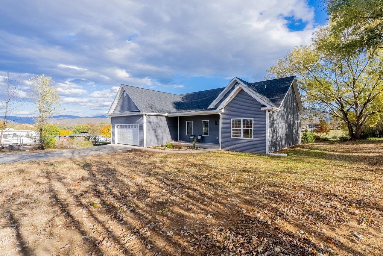 Introducing this stunning new construction modern ranch set on a spacious 0.94 acre lot, offering the perfect blend of contemporary design and serene outdoor living. Boasting an open floor plan with soaring ceilings and large windows, this home is flooded with natural light and provides breathtaking mountain views from nearly every room. The sleek, gourmet kitchen features quartz countertops, state-of-the-art appliances, and a spacious island ideal for entertaining. The luxurious primary suite includes a walk-in closet and an en-suite bathroom with a soaker tub and modern fixtures. Additional bedrooms are generously sized with ample closet space. Step outside to a kept-in-mind outdoor living area, perfect for relaxing or hosting gatherings, with ample lawn space for outdoor activities. The expansive acreage offers plenty of room for a pool, gardening, or additional structures, all while enjoying unobstructed mountain vistas. Located in a peaceful setting, this modern ranch provides privacy and tranquility while being conveniently close to local amenities, dining, the Shenandoah National Park & more.