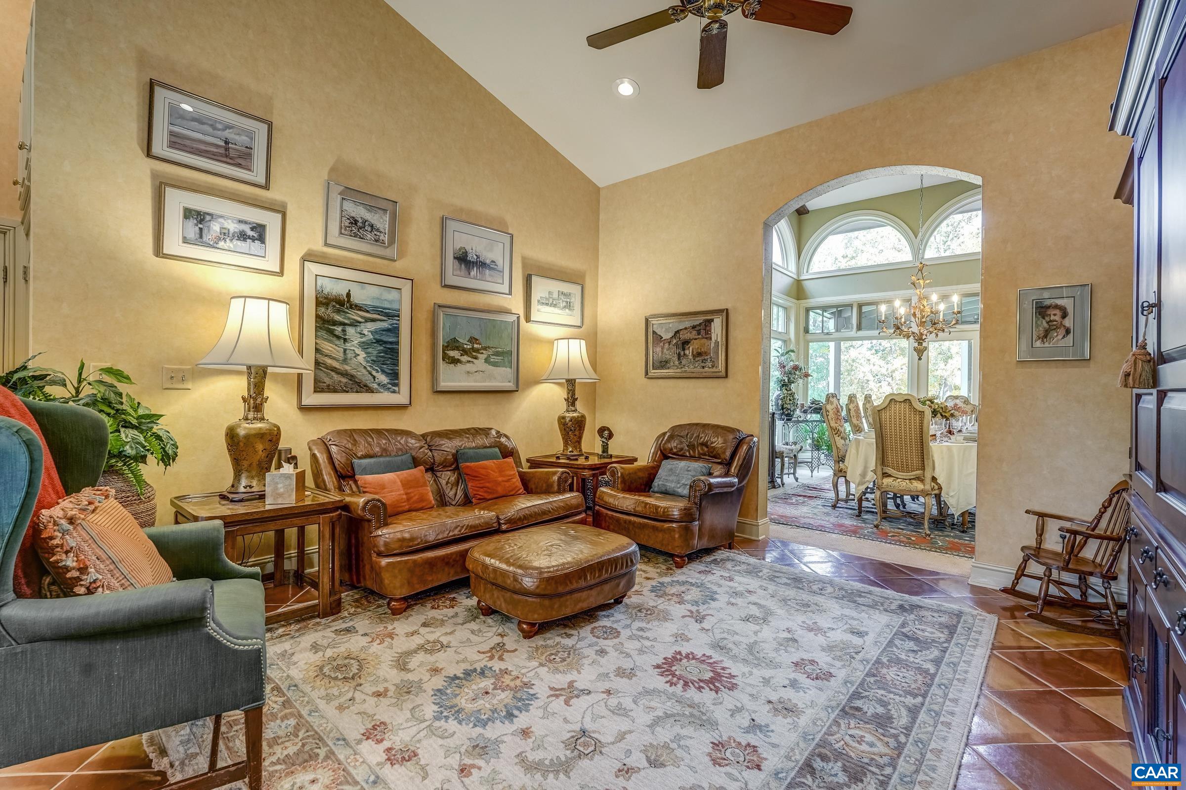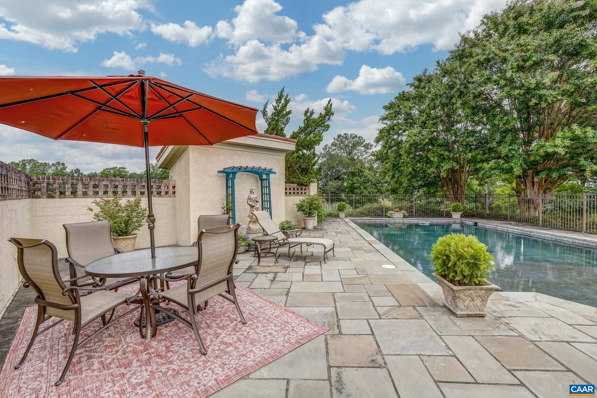 Stunning Tuscan Style home located in the heart of Keswick, privately set on 2 parcels! totaling 57.27 acres with lake and Southwest Mountain views. Every detail of this home was planned with an artists keen eye in creating a Mediterranean inspired retreat. Features include one level living at its finest, great room with soaring beamed ceilings, floor to ceiling stone fireplace, large transom windows furnish abundant natural light and capture outdoor living space, lake views, landscaped beauty, pool and outdoor fireplace. Floor to ceiling custom built-ins create space for books and other treasures, with a formal dining room and library completing the picture. Follow the Saltillo tile flooring through a cozy den to a spacious kitchen and center island. 3 Beds/3 Full and 1 Half Bath. Primary Suite offers a sitting/dressing area and creates a relaxing and luxurious sanctuary. Artists studio with 2 additional bedrooms share a full bath while a third full bath/changing area is conveniently located near the pool entrance. The 2 car garage has extra space for golf cart or riding mower. This home is a one of a kind offering not to be missed. Appt. Only. Do not disturb!! Note: listing is for 2 parcels, online values are incorrect.
