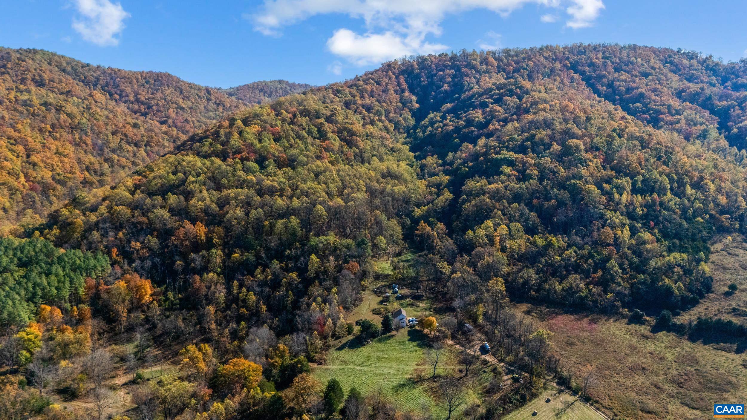 101 acres of mostly wooded mountain land in Western Nelson County. Private 2 story 1900s farm house that has been carefully outfitted to feel original yet updated. Listen to the sounds of nature from 2 covered porches offering morning sunrises or evening sunsets. The property has walking/hunting trails throughout and has not been cut since the 1990's. Close to Crabtree Falls, Appalachian Trail, Wintergreen Resort and numerous sipping and eating venues. Convenient to Lynchburg, Charlottesville, Lexington. Beauty and wildlife abounds!