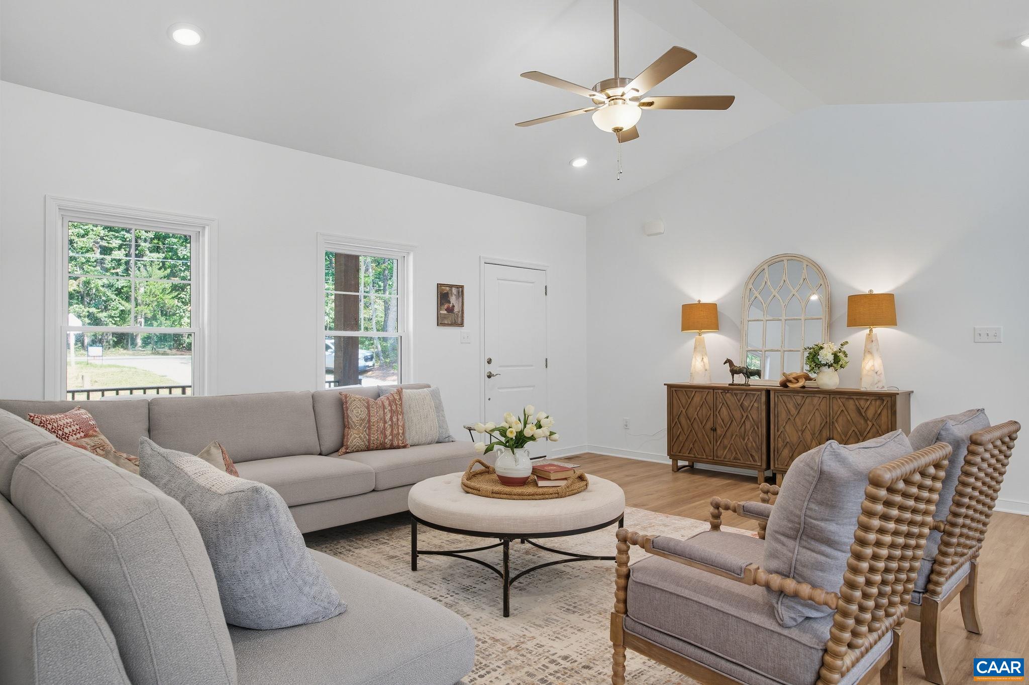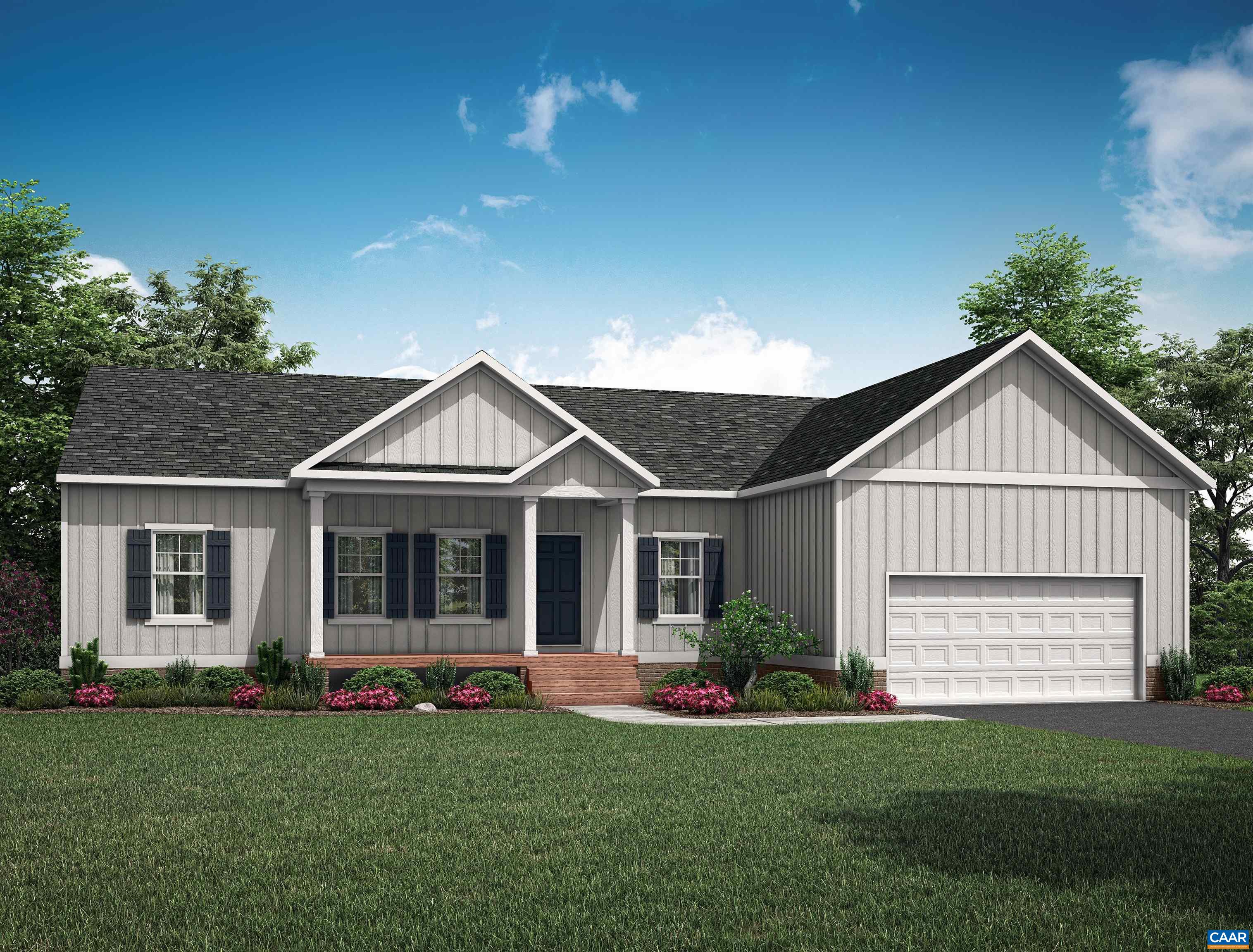 THIS IS A TO BE BUILT HOME! Ask about floor plans and available homesites. The Mallory floor plan is a charming ranch plan with a welcoming covered front porch (18'6"X6') and a 1.51 acre lot. There are option for a bonus space/bedroom ensuite over the garage, see floor plan in photos. As you step inside, you'll find an expansive living area where the family room, dinette, and kitchen flow together. The kitchen is both functional and stylish, offering ample counter space, and a pantry for all your storage needs. Adjacent is the dinette features sliding glass doors to the backyard. Off the family room, are the second and third bedrooms, both spacious and separated by a full bathroom. On the opposite side of the home, the primary suite offers a private retreat with a generous bedroom with walk- in closet and ensuite bathroom. The bathroom includes a walk-in shower, dual vanity, and private water closet. Located near the primary suite, the laundry room doubles as a mudroom with access to 2-car garage. This home home can be built in Compass Cove, where luxury living meets water access to the beauty of Lake Anna. Photos for advertising purposes and are not of the actual home and may include upgrades not included in listed price.