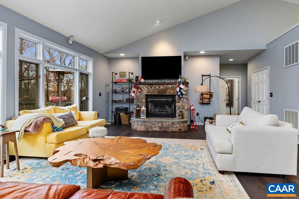 Fireplace Type: One, Stone, WoodBurning
