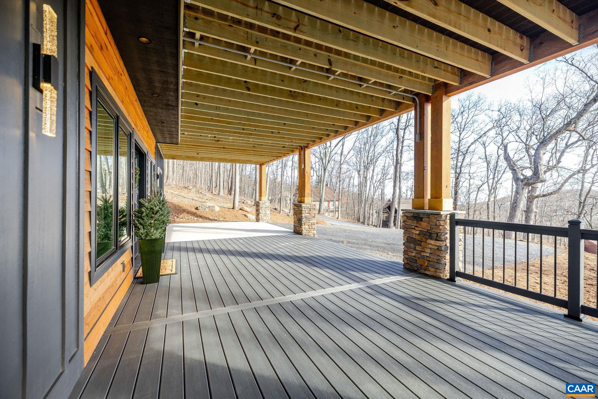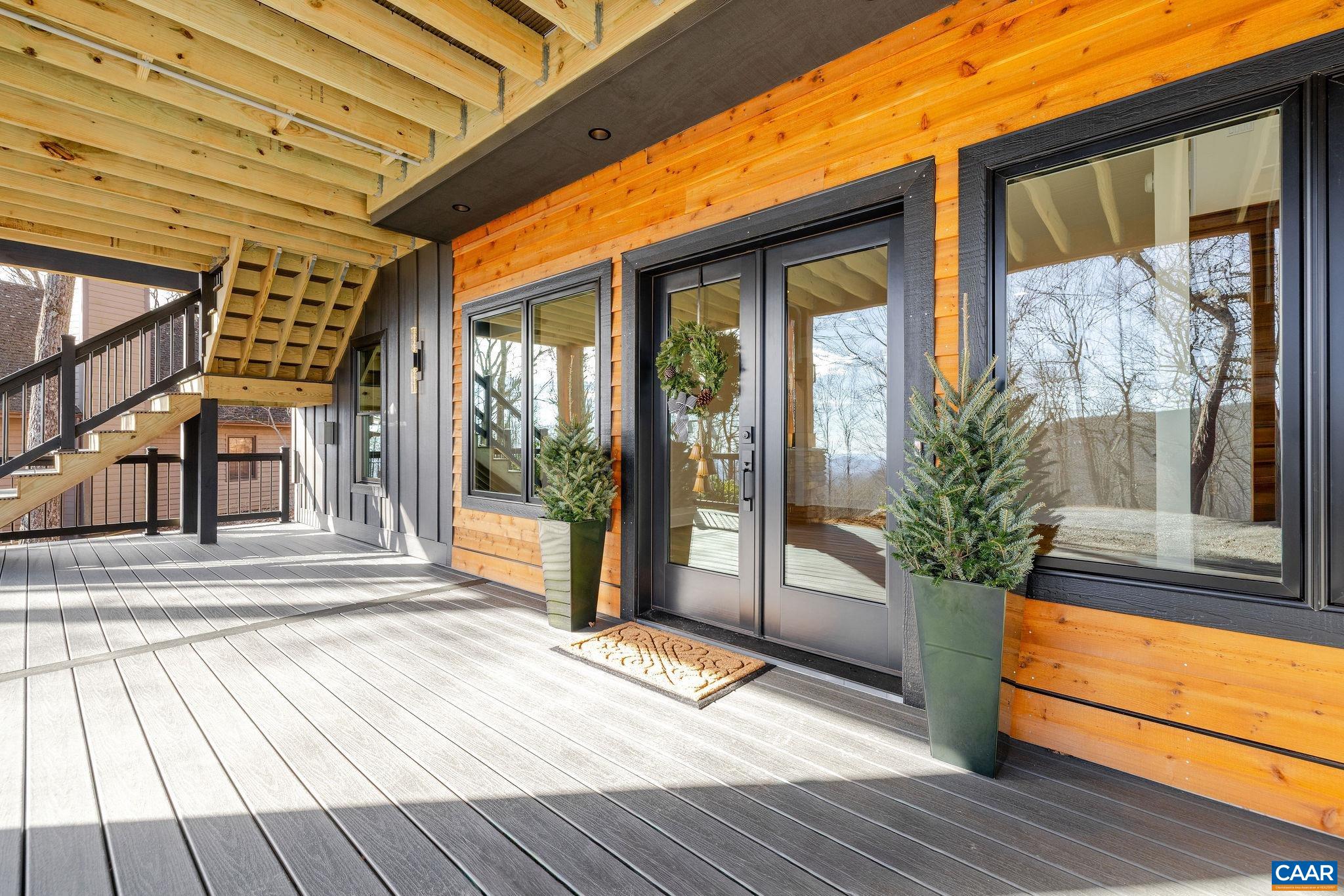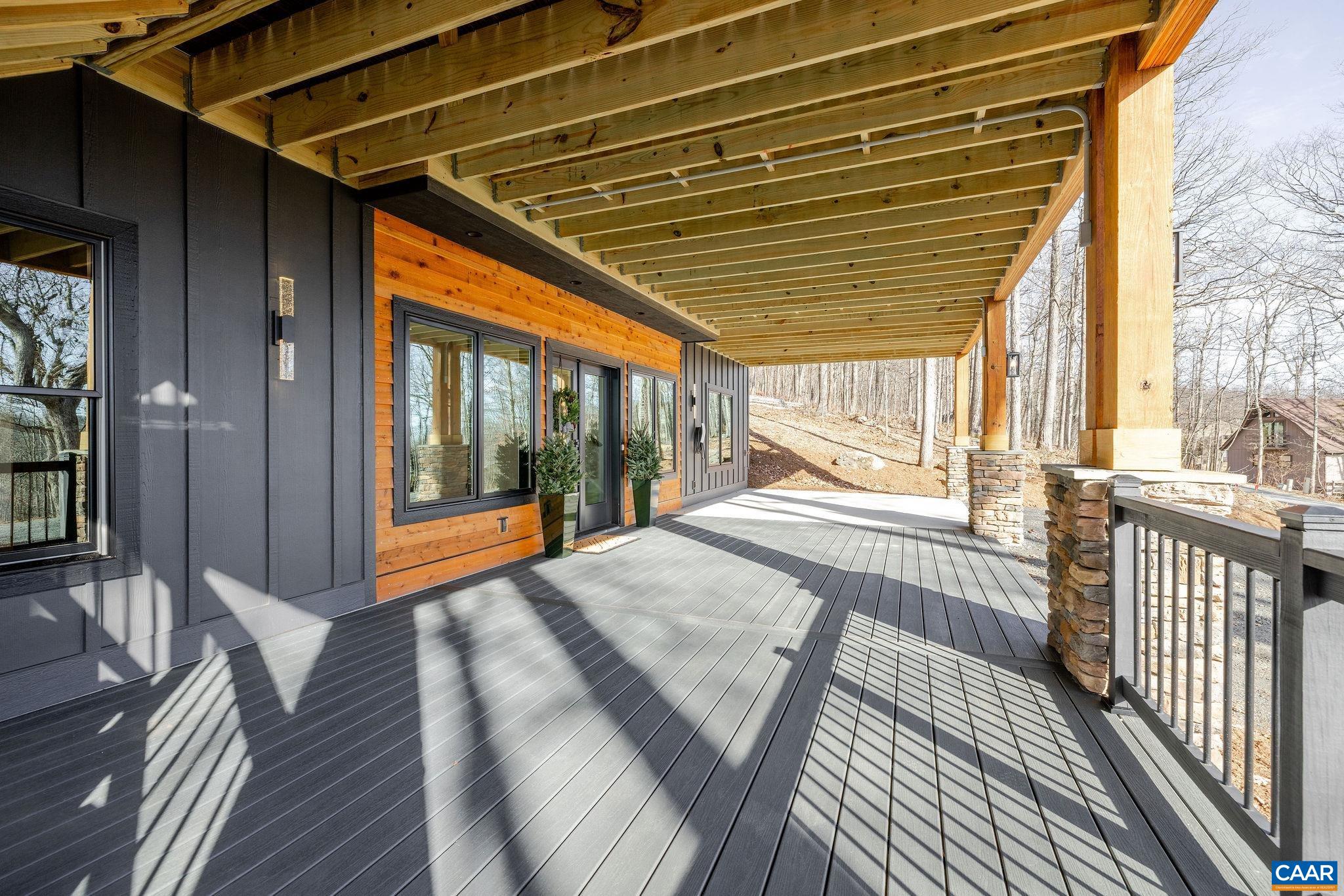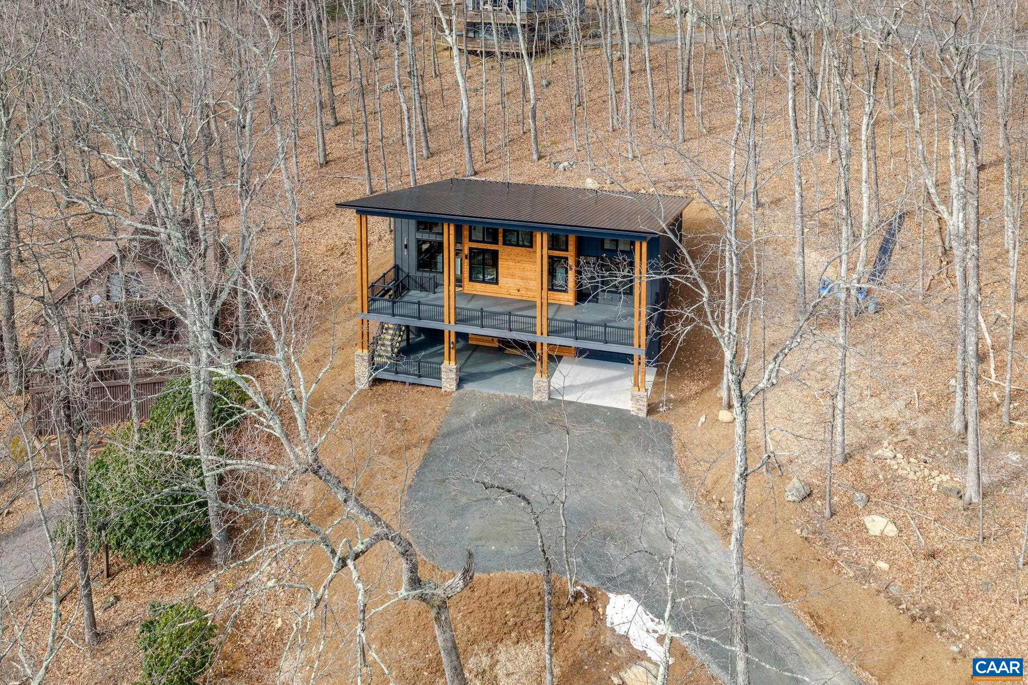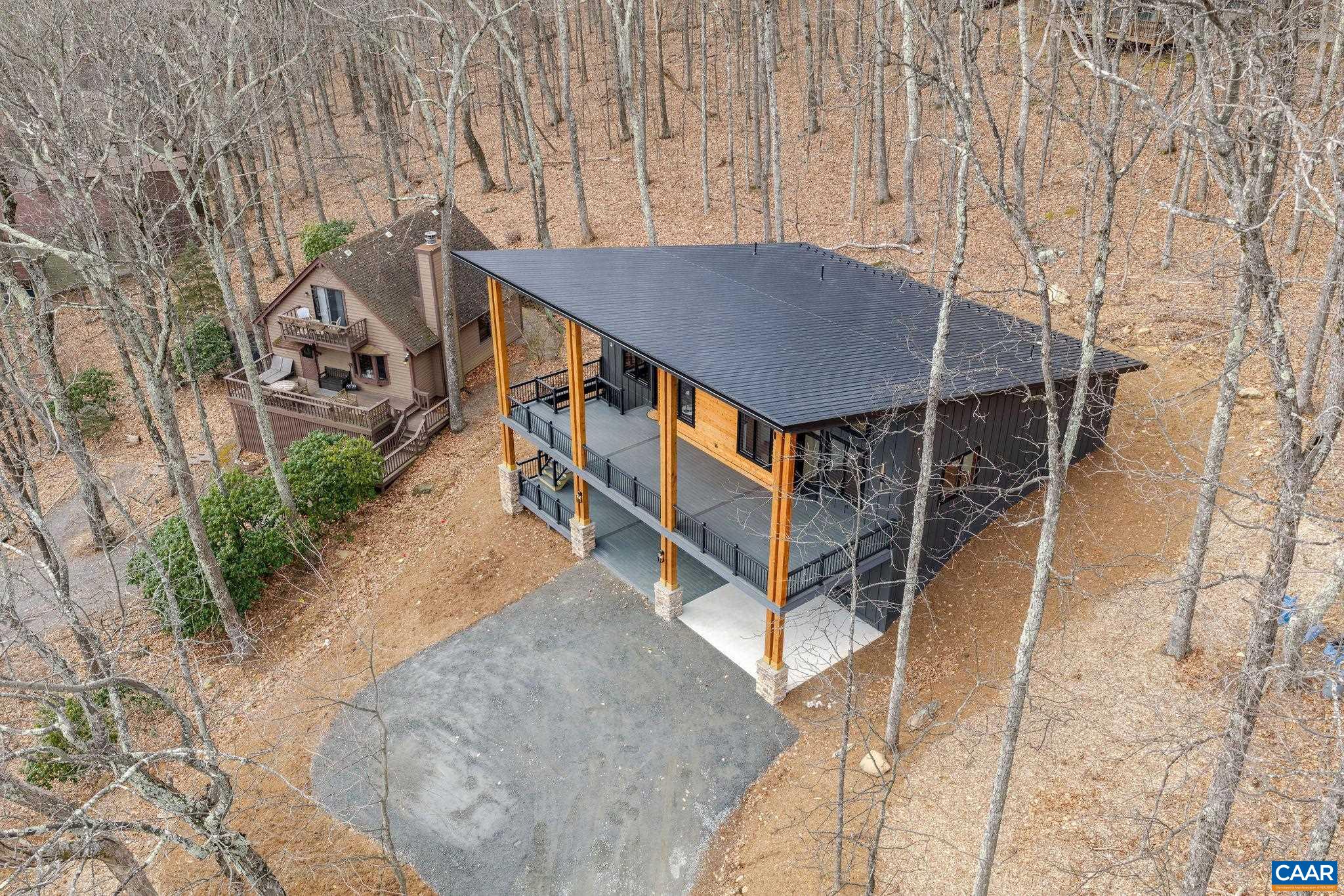 Stunning Modern Mountain Chalet. New construction home situated on a premium lot near the Mountain Inn. Perfect floor plan for a large extended family or 2 families to share - 4 ensuite bedrooms plus powder room, and living areas upstairs and down, so adults and kids each have their own space. This home was just completed by Wintergreen's premier builder, Solid Rock Properties. High quality finishes and wide plank wood flooring throughout the home. Two-zone heat pump for efficient comfort. Gourmet kitchen package with stainless appliances, quartz countertops, custom cabinets, beverage cooler, drawer microwave, pantry, huge eat-in island with waterfall countertops. Enjoy the soaring ceilings and modern electric fireplace in the main living area (the area above the fireplace is wired for a TV). Take in the scenic mountain views from the full wall of widows. The exterior of the home features a huge deck, metal roof, covered parking spot, Level 2 50-amp EV charger, tongue and groove wood ceiling, hardie-plank siding and custom double front door entry. Lower deck was built and wired to support a hot tub. This is a rare opportunity to own a beautiful modern new-construction home at Wintergreen Resort.