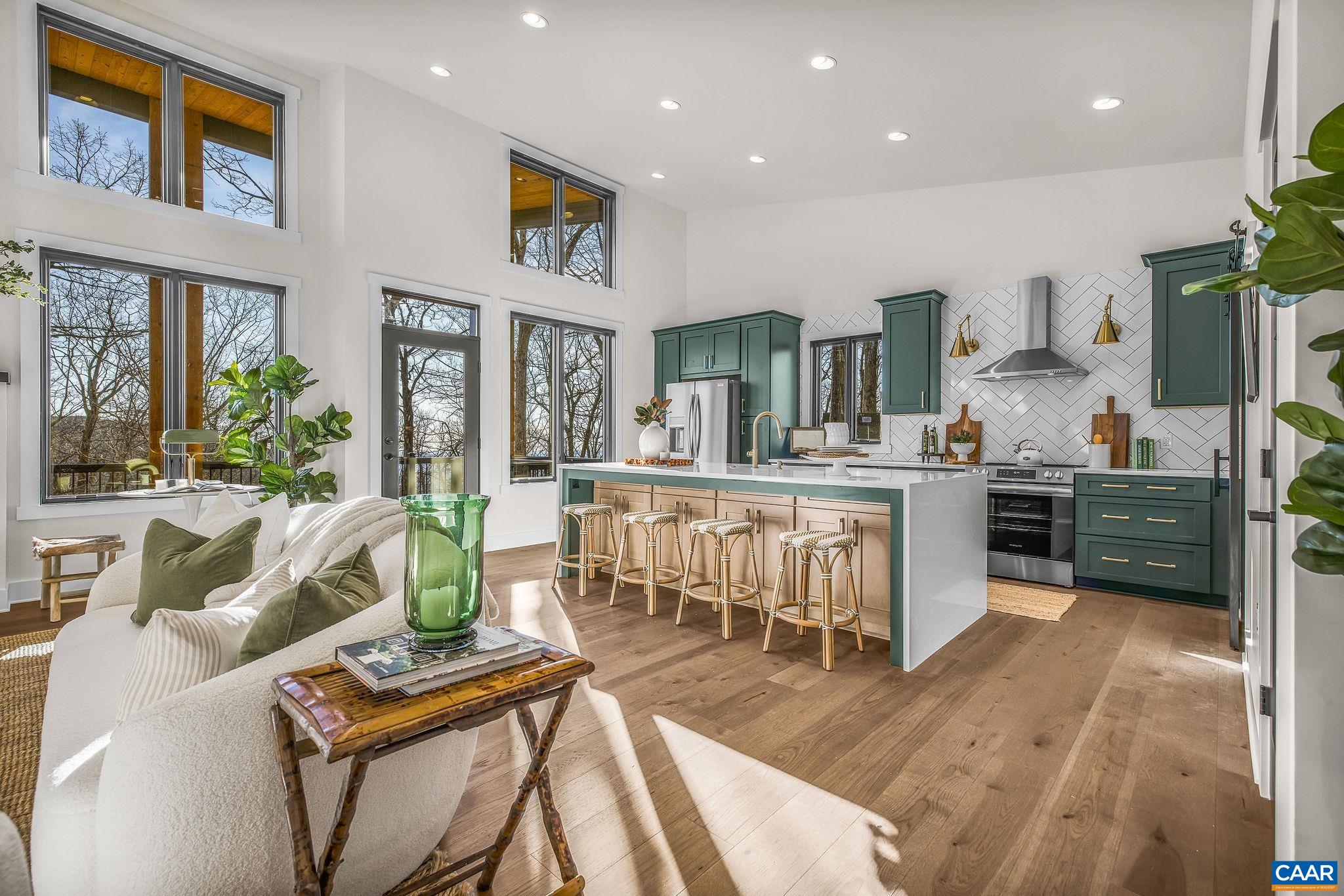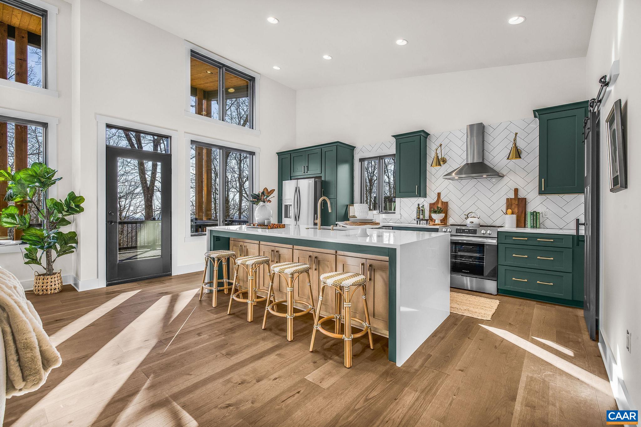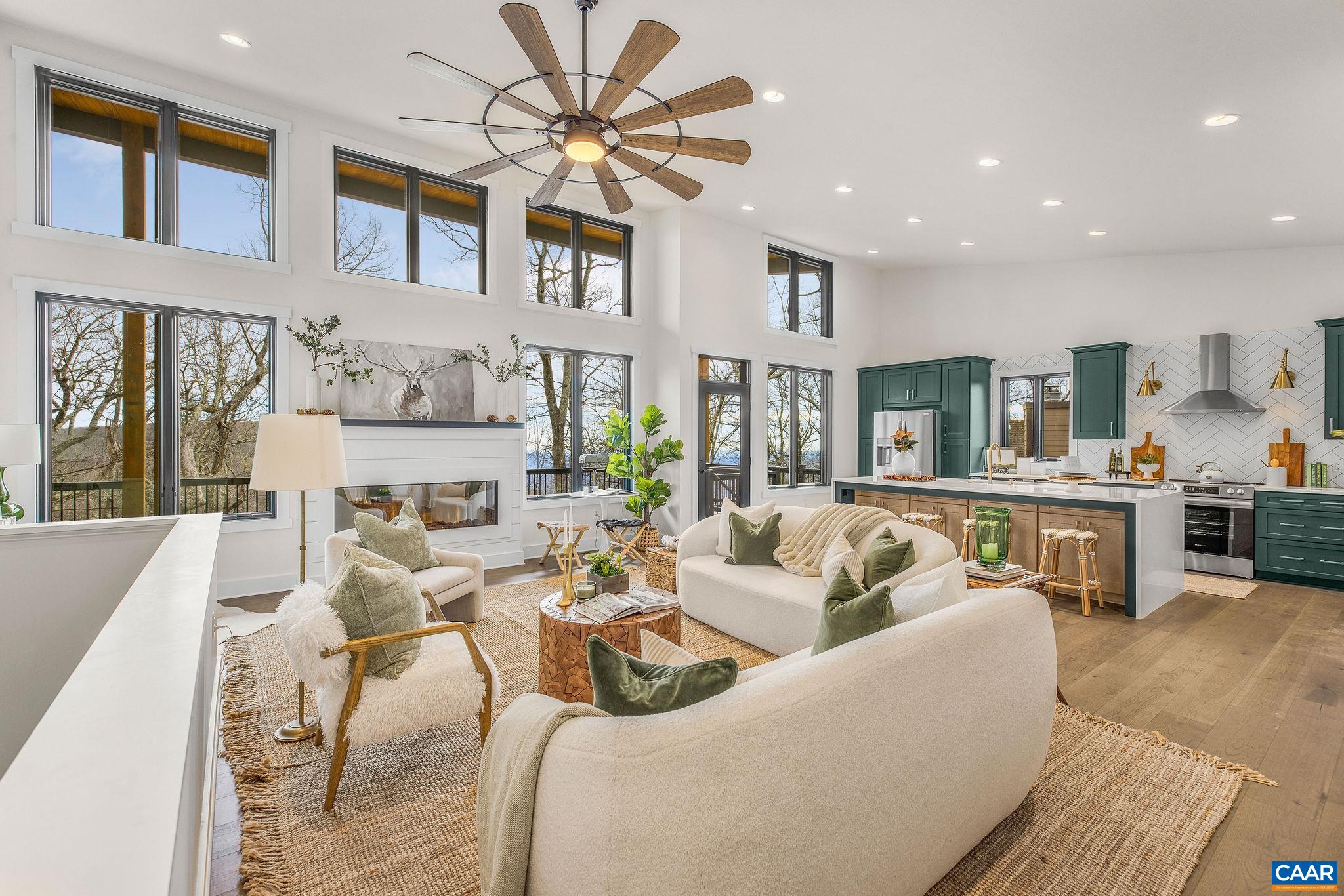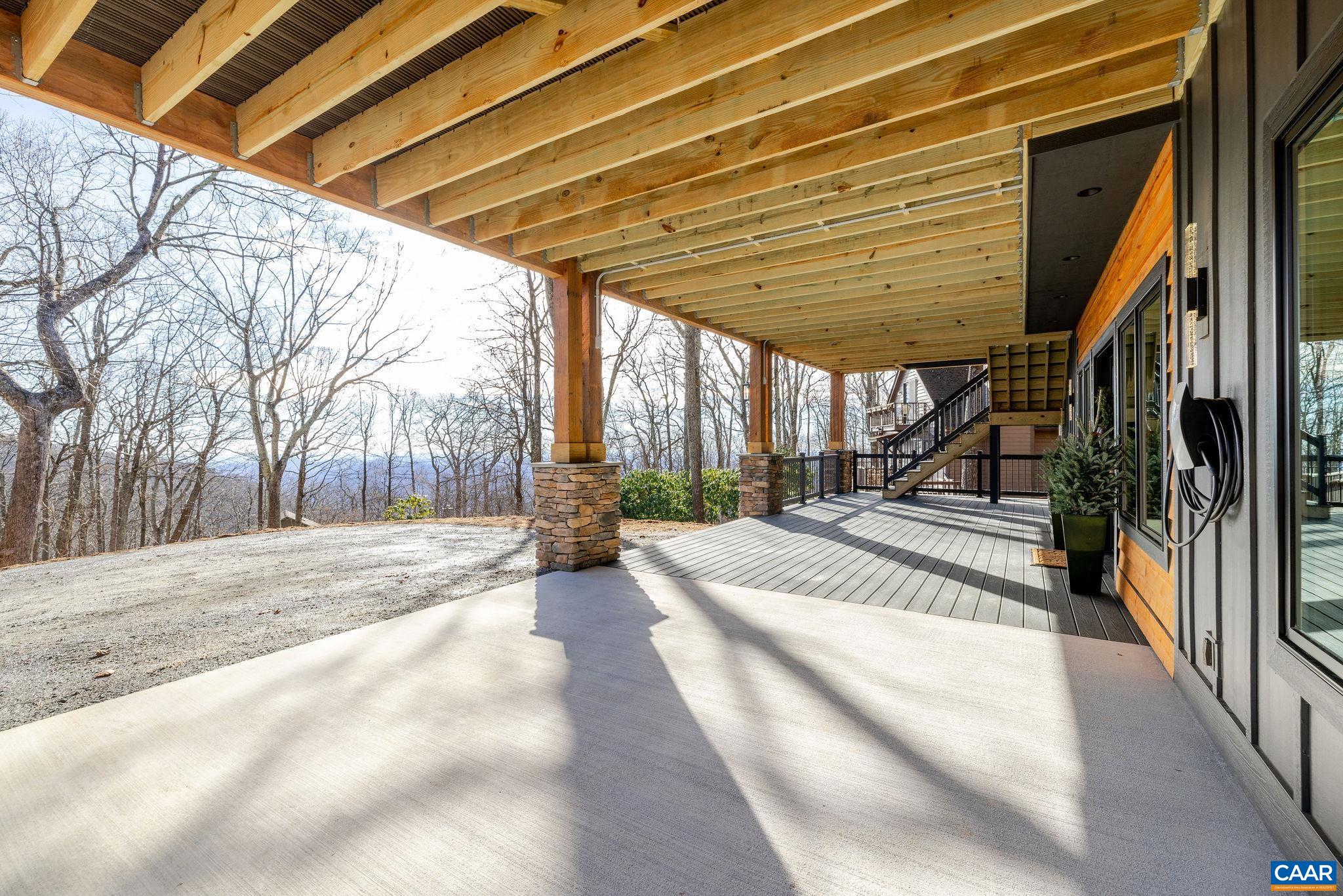 Stunning Modern Mountain Chalet. New construction home situated on a premium lot near the Mountain Inn. Perfect floor plan for a large extended family or 2 families to share - 4 ensuite bedrooms plus powder room, and living areas upstairs and down, so adults and kids each have their own space. This home was just completed by Wintergreen's premier builder, Solid Rock Properties. High quality finishes and wide plank wood flooring throughout the home. Two-zone heat pump for efficient comfort. Gourmet kitchen package with stainless appliances, quartz countertops, custom cabinets, beverage cooler, drawer microwave, pantry, huge eat-in island with waterfall countertops. Enjoy the soaring ceilings and modern electric fireplace in the main living area (the area above the fireplace is wired for a TV). Take in the scenic mountain views from the full wall of widows. The exterior of the home features a huge deck, metal roof, covered parking spot, Level 2 50-amp EV charger, tongue and groove wood ceiling, hardie-plank siding and custom double front door entry. Lower deck was built and wired to support a hot tub. This is a rare opportunity to own a beautiful modern new-construction home at Wintergreen Resort.