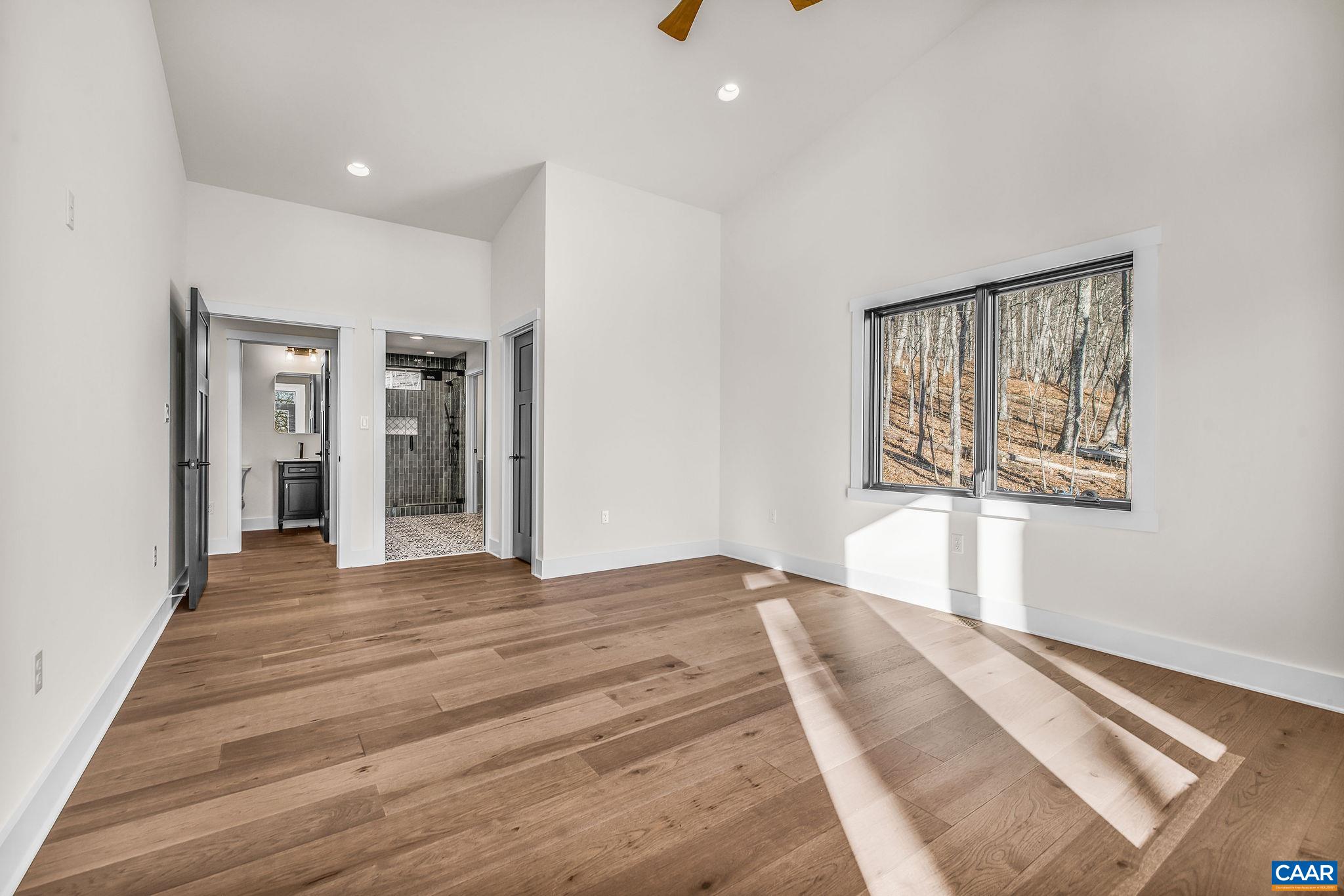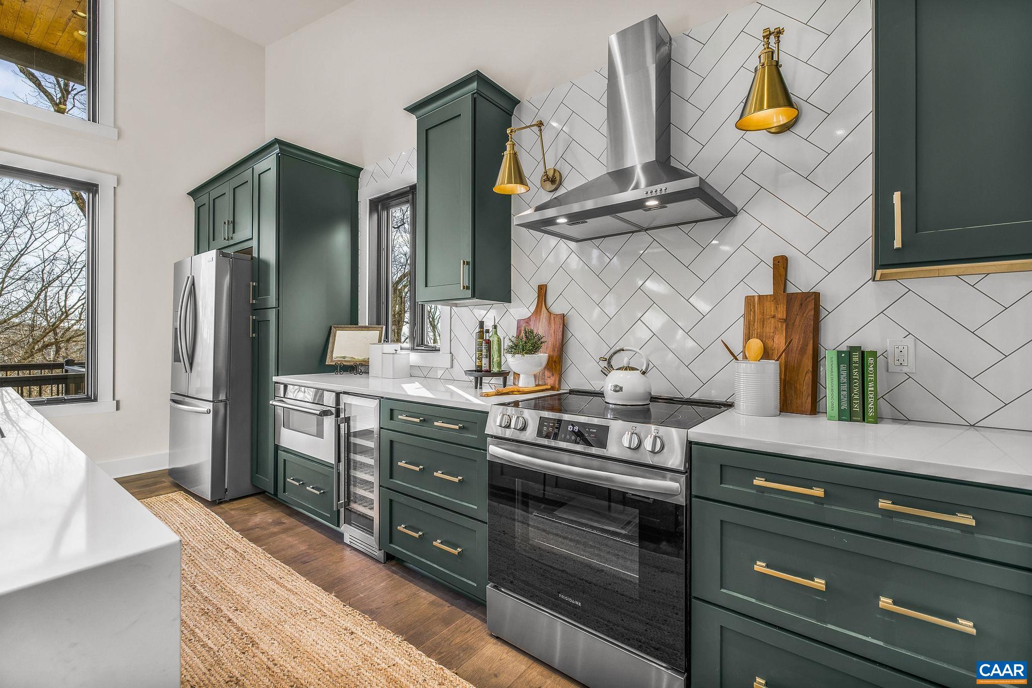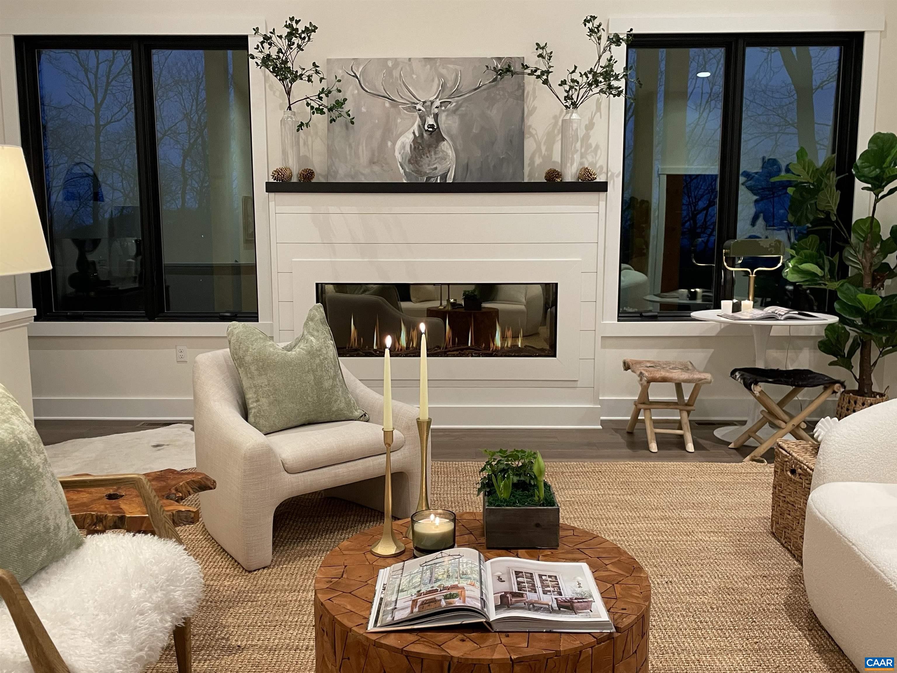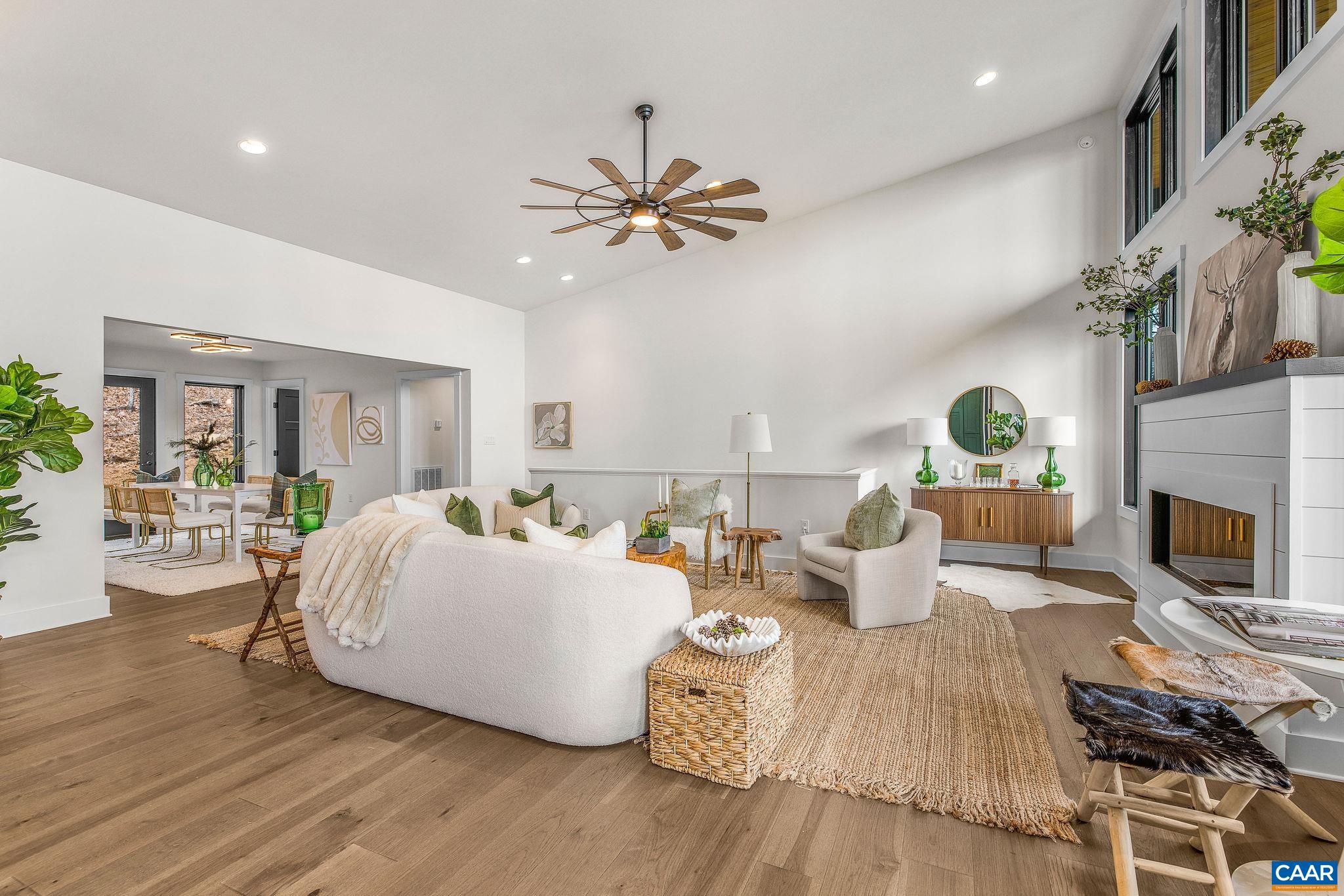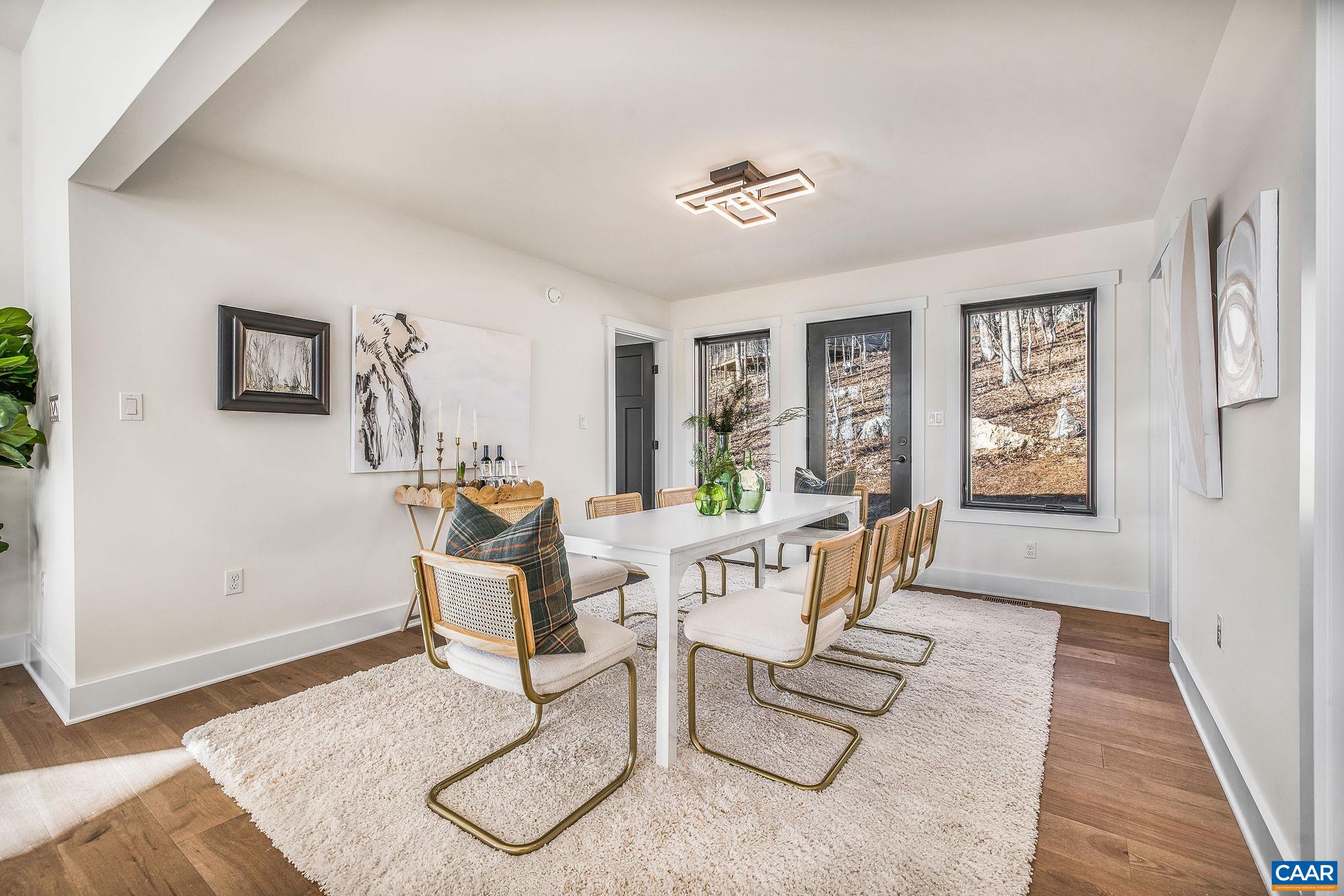 Stunning Modern Mountain Chalet. New construction home situated on a premium lot near the Mountain Inn. Perfect floor plan for a large extended family or 2 families to share - 4 ensuite bedrooms plus powder room, and living areas upstairs and down, so adults and kids each have their own space. This home was just completed by Wintergreen's premier builder, Solid Rock Properties. High quality finishes and wide plank wood flooring throughout the home. Two-zone heat pump for efficient comfort. Gourmet kitchen package with stainless appliances, quartz countertops, custom cabinets, beverage cooler, drawer microwave, pantry, huge eat-in island with waterfall countertops. Enjoy the soaring ceilings and modern electric fireplace in the main living area (the area above the fireplace is wired for a TV). Take in the scenic mountain views from the full wall of widows. The exterior of the home features a huge deck, metal roof, covered parking spot, Level 2 50-amp EV charger, tongue and groove wood ceiling, hardie-plank siding and custom double front door entry. Lower deck was built and wired to support a hot tub. This is a rare opportunity to own a beautiful modern new-construction home at Wintergreen Resort.