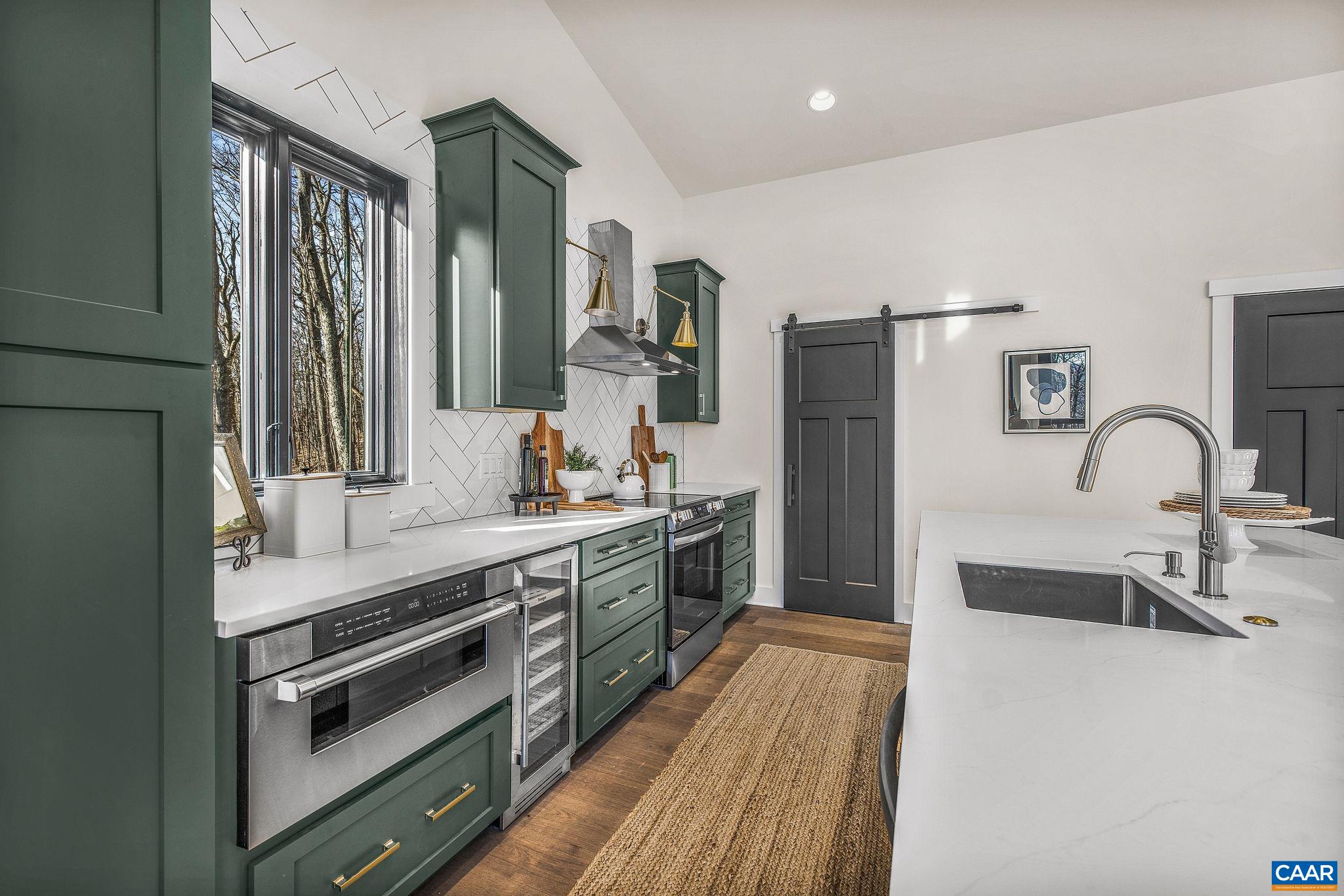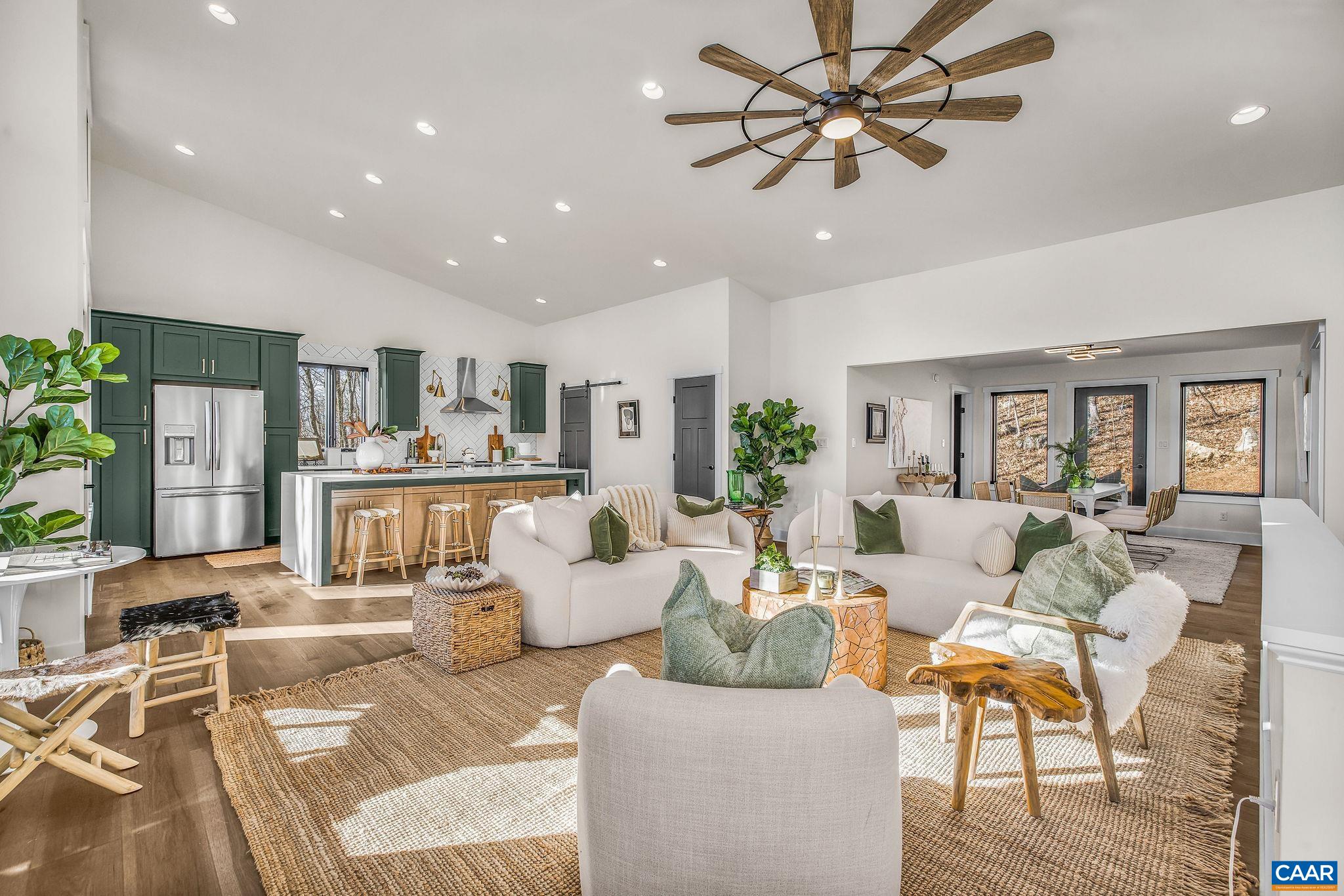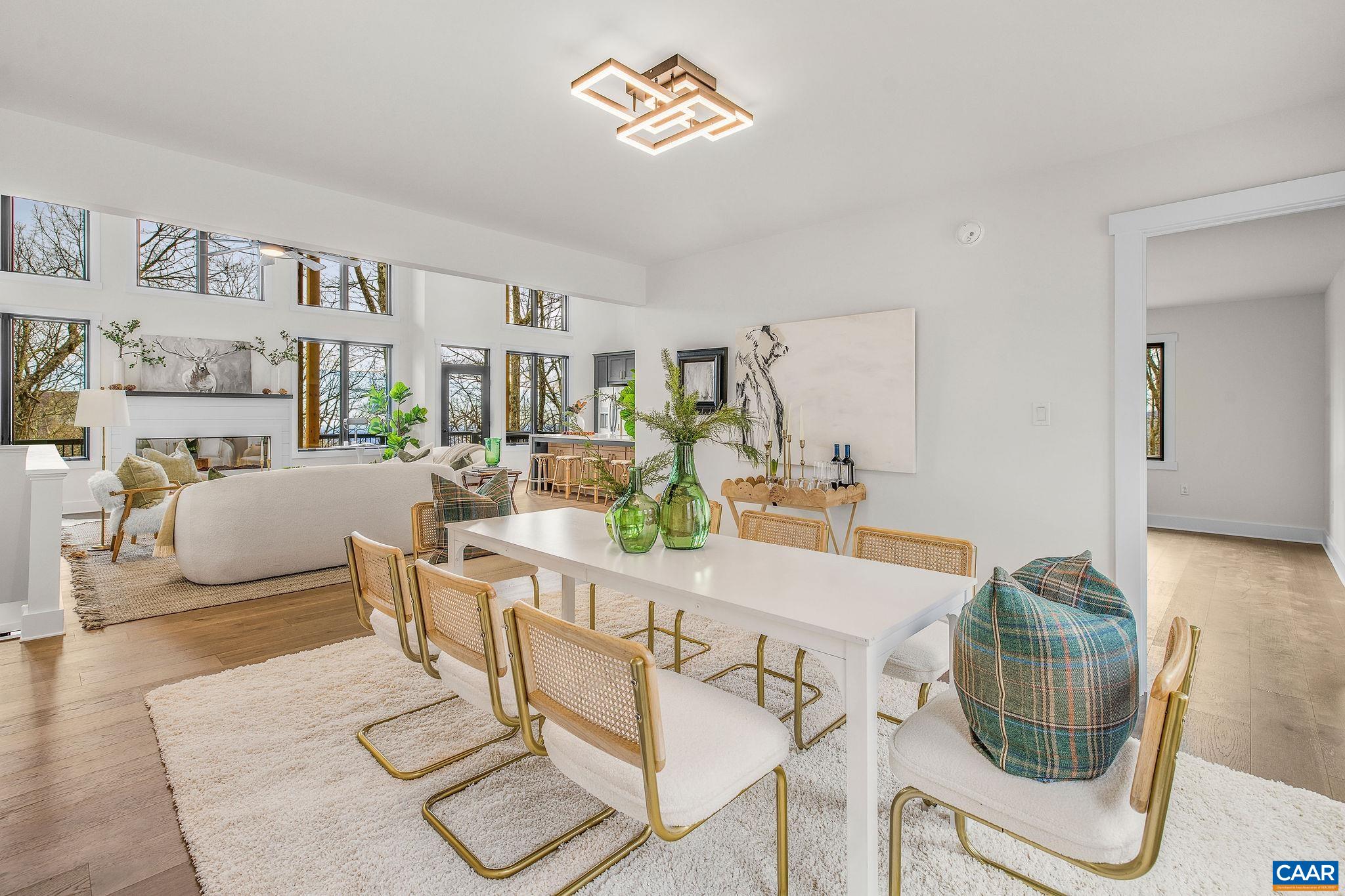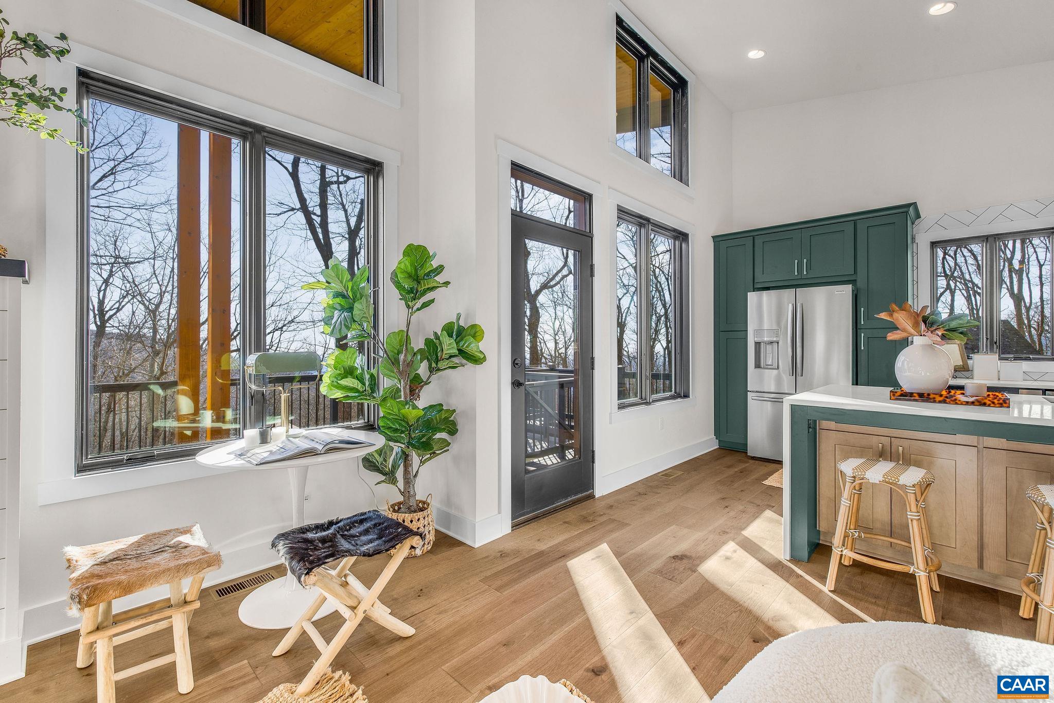 Stunning Modern Mountain Chalet. New construction home situated on a premium lot near the Mountain Inn. Perfect floor plan for a large extended family or 2 families to share - 4 ensuite bedrooms plus powder room, and living areas upstairs and down, so adults and kids each have their own space. This home was just completed by Wintergreen's premier builder, Solid Rock Properties. High quality finishes and wide plank wood flooring throughout the home. Two-zone heat pump for efficient comfort. Gourmet kitchen package with stainless appliances, quartz countertops, custom cabinets, beverage cooler, drawer microwave, pantry, huge eat-in island with waterfall countertops. Enjoy the soaring ceilings and modern electric fireplace in the main living area (the area above the fireplace is wired for a TV). Take in the scenic mountain views from the full wall of widows. The exterior of the home features a huge deck, metal roof, covered parking spot, Level 2 50-amp EV charger, tongue and groove wood ceiling, hardie-plank siding and custom double front door entry. Lower deck was built and wired to support a hot tub. This is a rare opportunity to own a beautiful modern new-construction home at Wintergreen Resort.