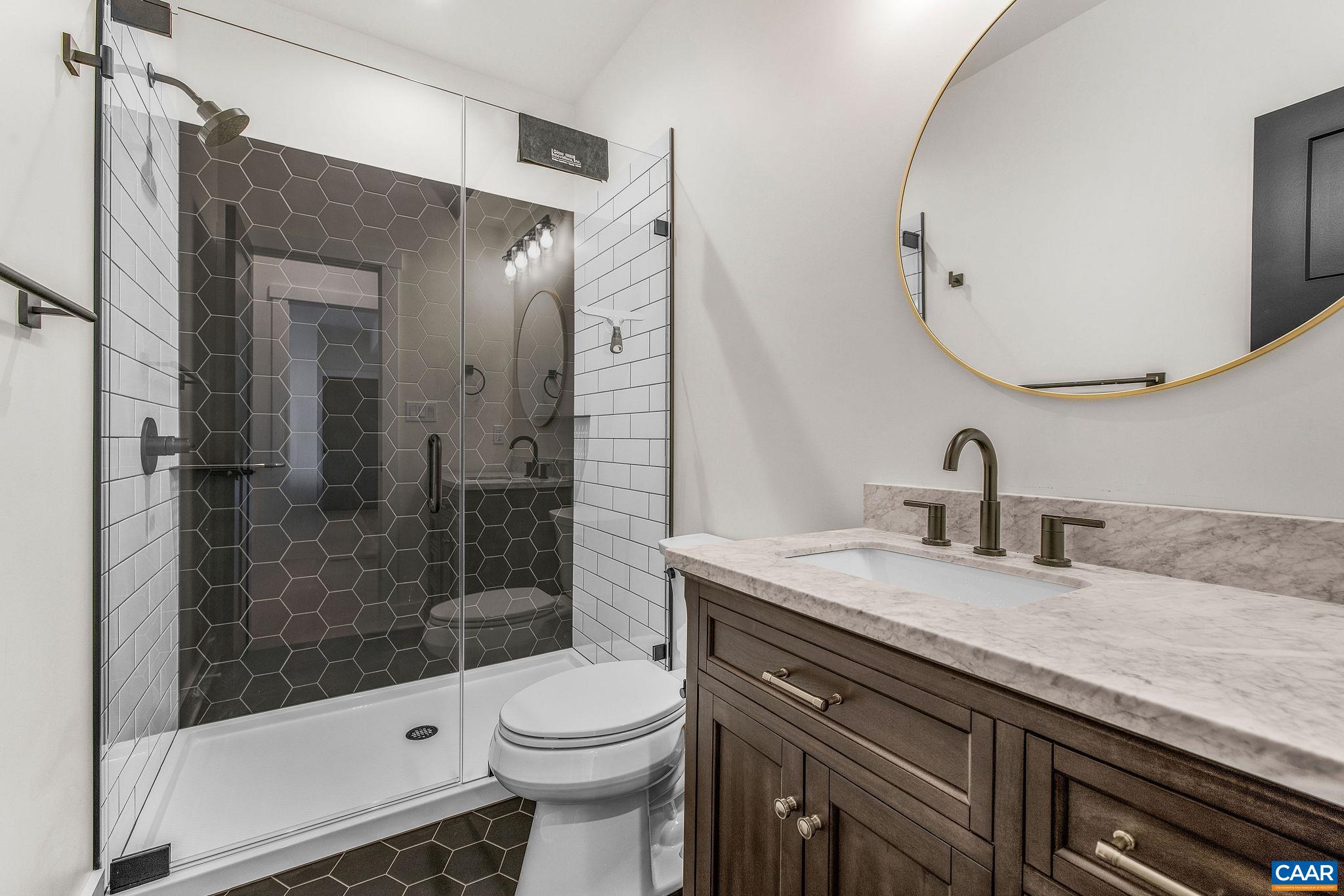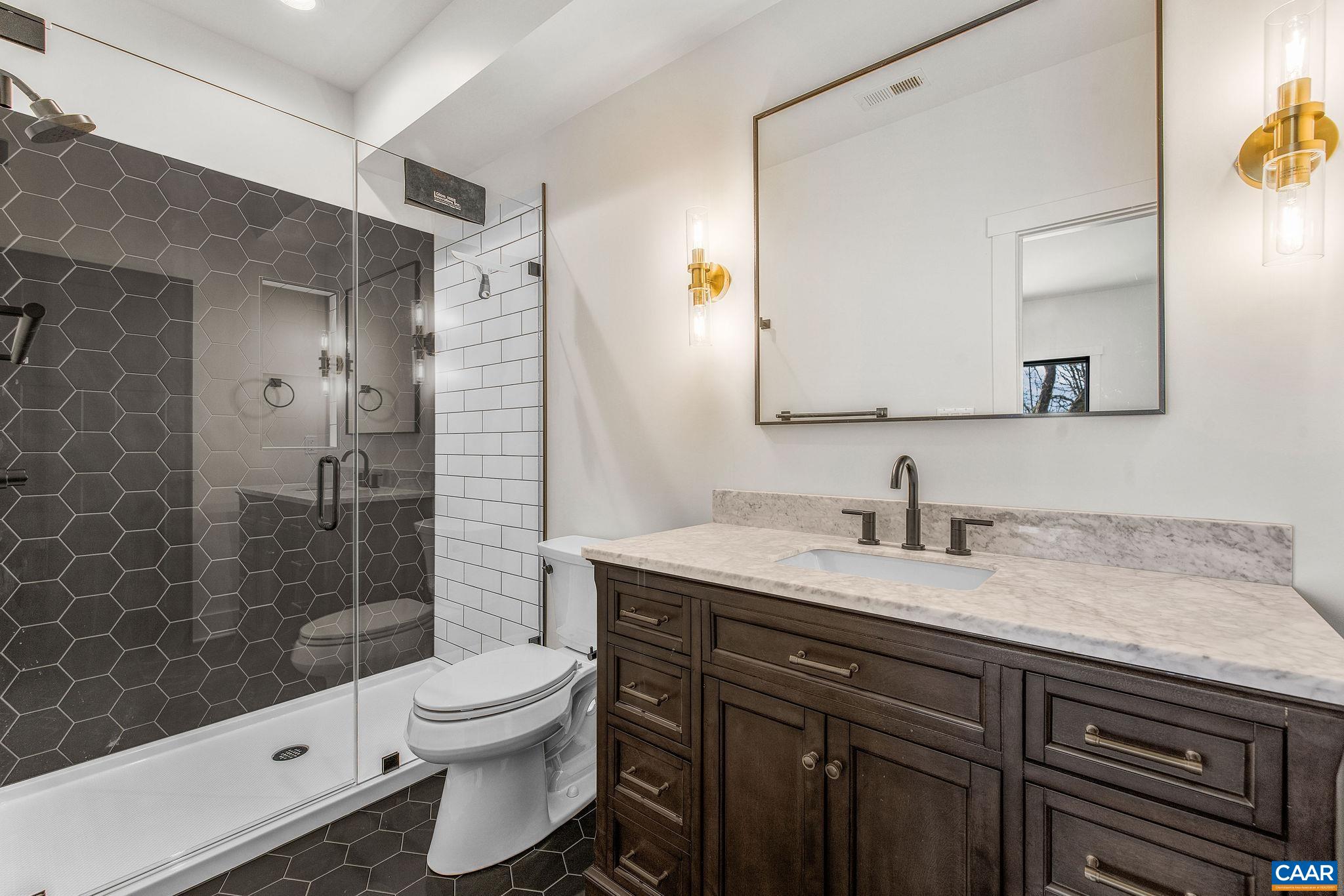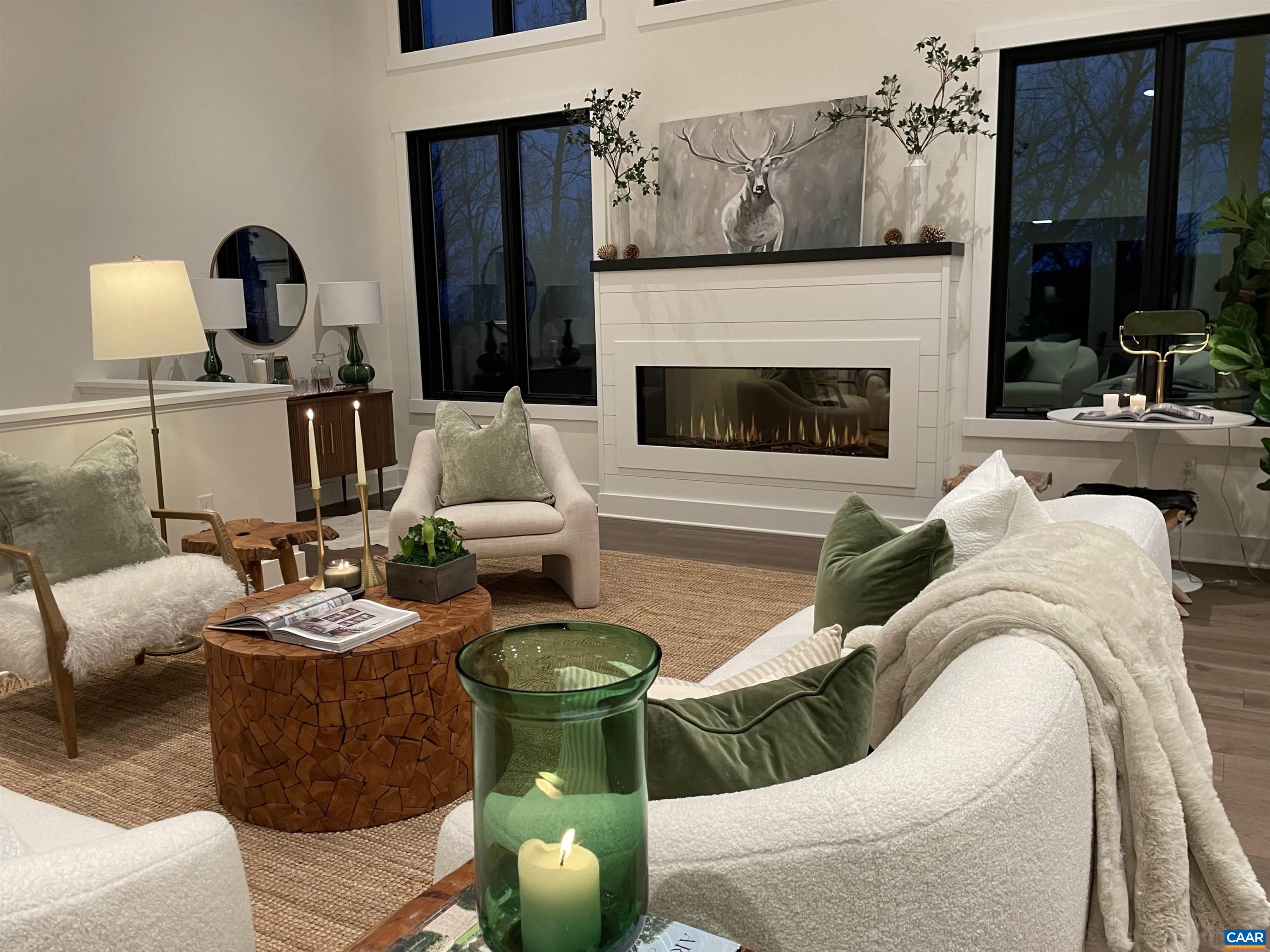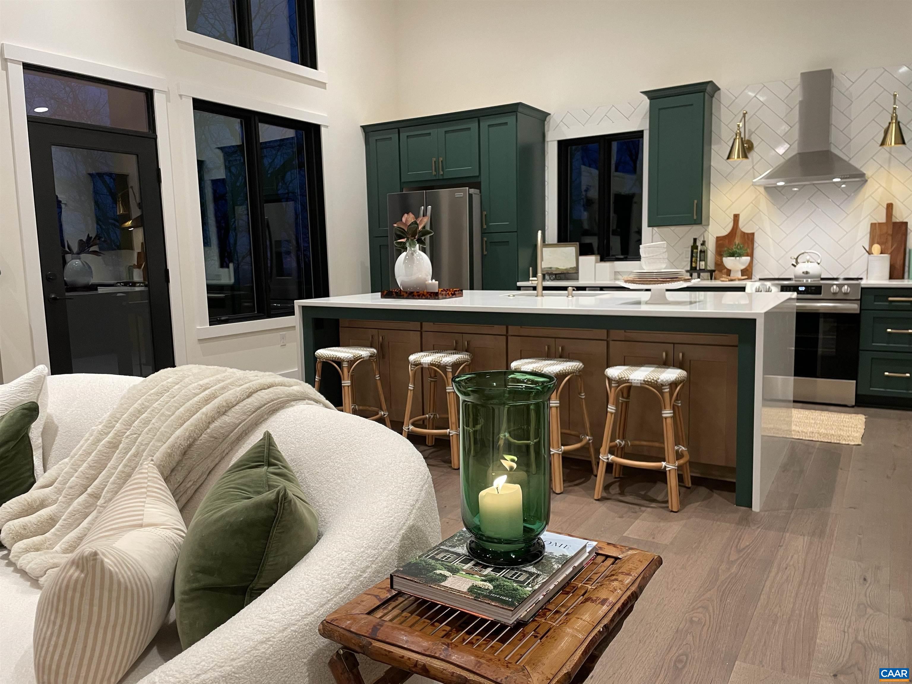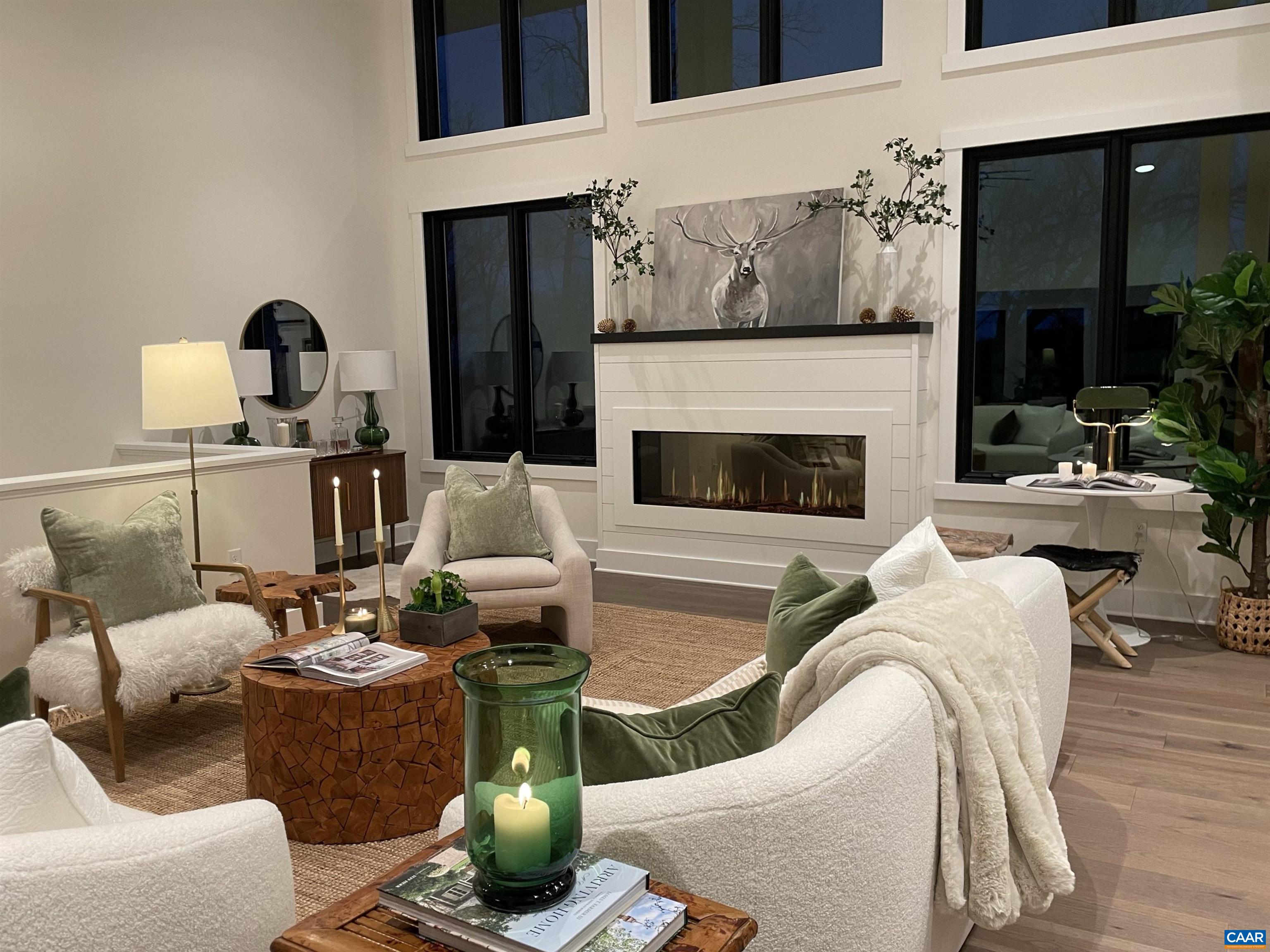 Stunning Modern Mountain Chalet. New construction home situated on a premium lot near the Mountain Inn. Perfect floor plan for a large extended family or 2 families to share - 4 ensuite bedrooms plus powder room, and living areas upstairs and down, so adults and kids each have their own space. This home was just completed by Wintergreen's premier builder, Solid Rock Properties. High quality finishes and wide plank wood flooring throughout the home. Two-zone heat pump for efficient comfort. Gourmet kitchen package with stainless appliances, quartz countertops, custom cabinets, beverage cooler, drawer microwave, pantry, huge eat-in island with waterfall countertops. Enjoy the soaring ceilings and modern electric fireplace in the main living area (the area above the fireplace is wired for a TV). Take in the scenic mountain views from the full wall of widows. The exterior of the home features a huge deck, metal roof, covered parking spot, Level 2 50-amp EV charger, tongue and groove wood ceiling, hardie-plank siding and custom double front door entry. Lower deck was built and wired to support a hot tub. This is a rare opportunity to own a beautiful modern new-construction home at Wintergreen Resort.