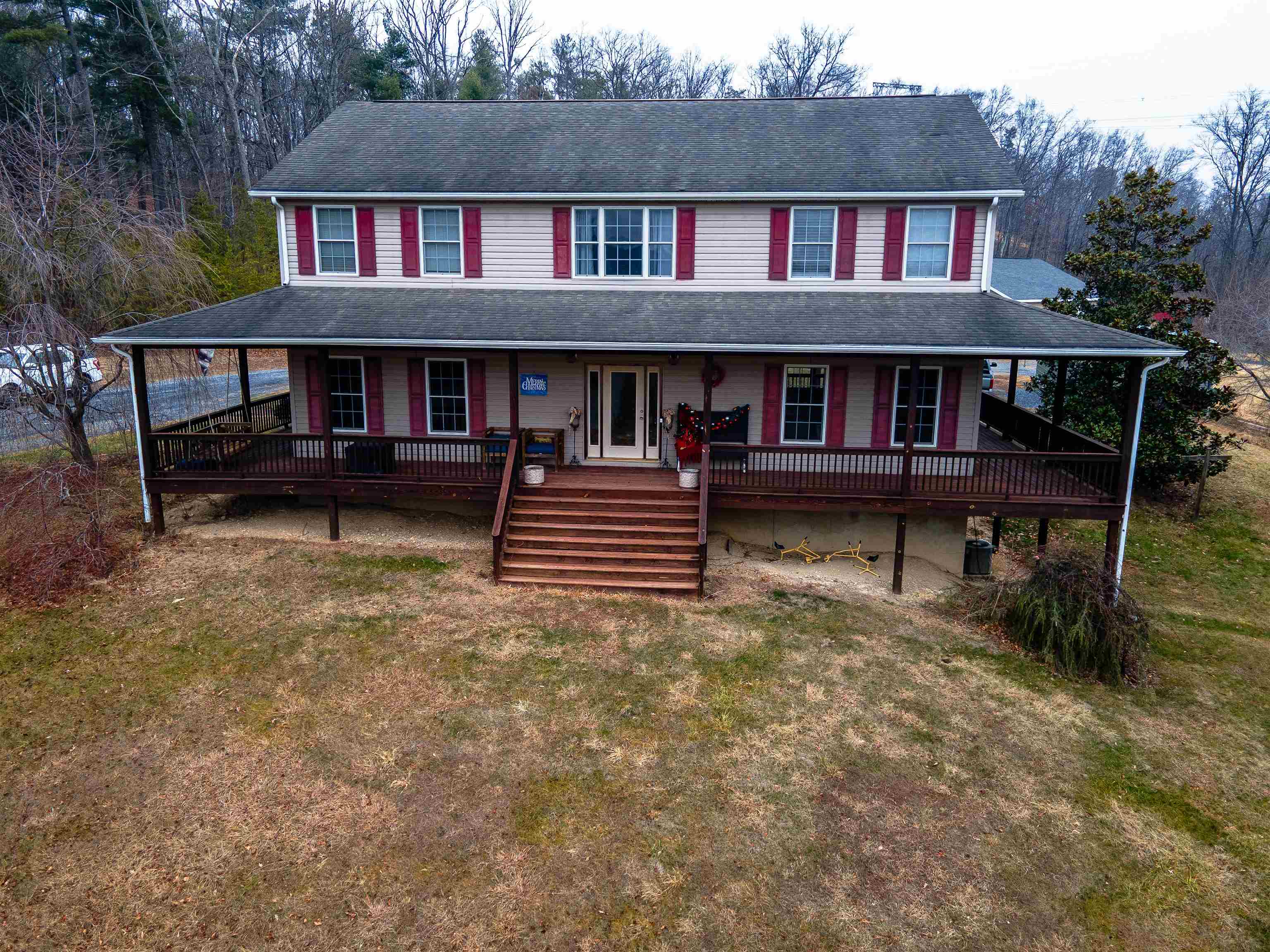 Come home to this picturesque farmhouse style retreat conveniently located on 11 acres. The home is elevated to take advantage of the views of the Blue Ridge that overlooks the acreage and stocked pond. This property is conveniently located, and offers a peaceful country setting with open areas, some woods, & garden space. As you arrive at the property, you notice the welcoming wrap around porch and just want to sit and stay a while taking in the views. Inside, the home, you walk into generously sized rooms filled with natural light, original wood floors, and a warm and inviting floor plan. The detached two to four car garage/workshop offers flexibility for your personal hobbies. The workshop has roughed in plumbing for a full bathroom and a walk up floored attic. This property is special and offers flexible opportunities to finish the basement, hobby farm, garden, fish, star gaze or simply just relax. Back building is being used as chicken coop. Additional Acreage Potential.