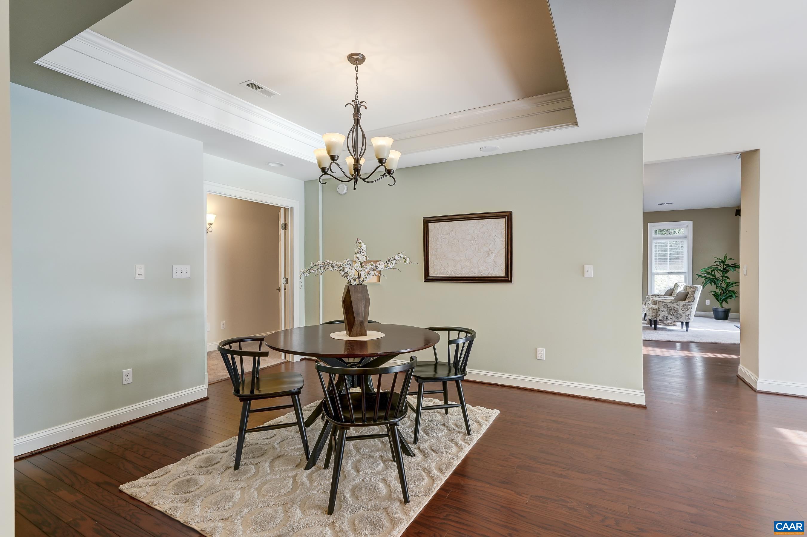 Well maintained Craig Builders home in the Village at Highlands community in Western Albemarle County! With siding, trim, front door, and light post maintenance and most landscaping provided by HOA this is a convenient low-maintenance community minutes from Crozet and Charlottesville. As you enter the home you'll love the stunning mirrored foyer, hardwood floors and custom blinds throughout the home. The formal dining room opens to the formal living room - great for entertaining! Great room features a vaulted ceiling with fan and gas fireplace, and is open to the updated kitchen with breakfast nook. Kitchen boasts Kenmore Elite stainless steel appliances, dark stained solid wood cabinets, and solid-surface counters. Main floor primary suite boasts two huge closets, high-end carpeting, and large bathroom with tiled walk-in shower. Two additional bedrooms on the main level share an updated full bathroom and are separated from the main living space and primary bedroom for privacy. Upstairs, the finished bonus room that could also be a guest suite or fourth bedroom includes a third full bathroom with separate HVAC system. All this plus a two car oversized garage, laundry room with washer/dryer and more!