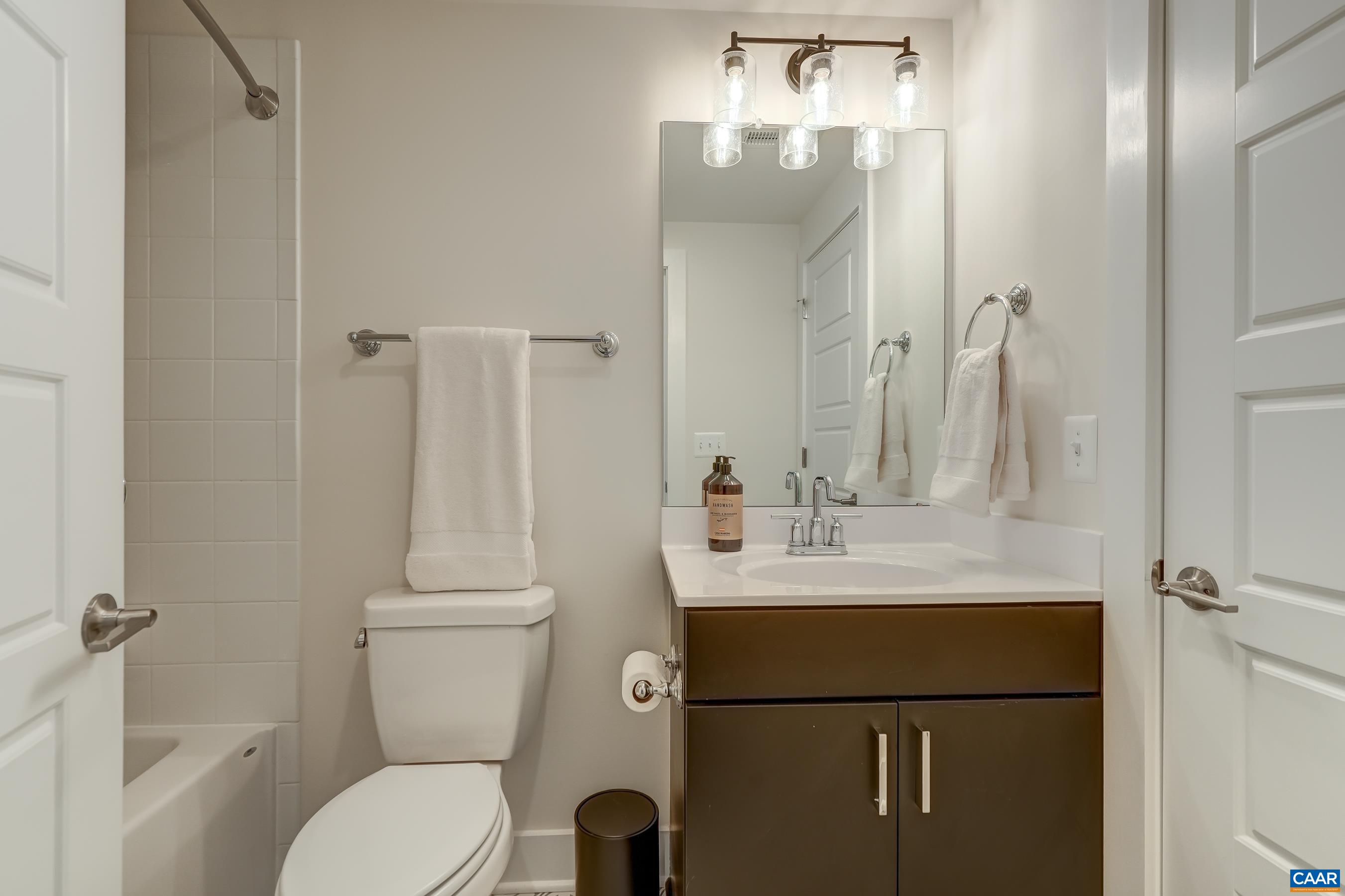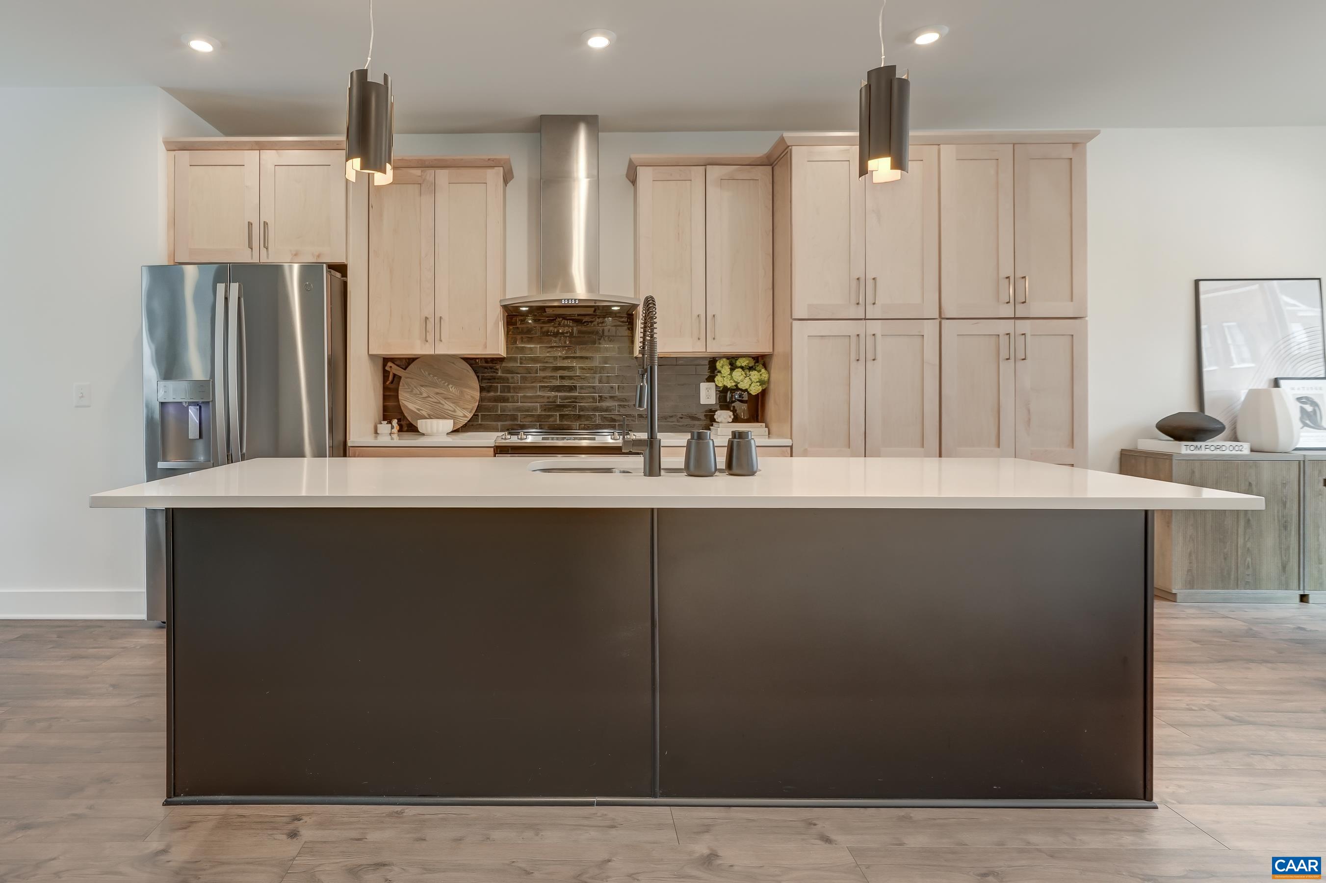 This modern townhome in the heart of Old Trail boasts a plethora of upgrades including laminate hardwood flooring, custom light-filtering blinds, and modern Heat & Glo electric fireplace. The gourmet kitchen is a chef's dream, with maple cabinets, quartz counters, and a generously sized island with seating. High-end GE stainless appliances elevate the cooking experience. A stunning tile backsplash serves as a designer focal point, adding a touch of sophistication to this already elegant space. Cabinets feature roll-out shelving and quiet close doors. Adjacent to the kitchen is a light-filled dining room area, spacious enough to host holiday gatherings and perfect for everyday dining. Upstairs, the owner's suite with vaulted ceiling and windows with remote-controlled shade offers a haven of comfort. A large walk-in closet provides ample storage, while the private bathroom exudes luxury with dual vanities and a frameless glass walk-in shower. Two additional bedrooms, a full bath, and and a conveniently located laundry room complete the upper level. The ground floor of this townhome boasts a fourth bedroom, which could also serve as a workout room or a home office and features a full bath. Dine outdoors on the composite deck too!