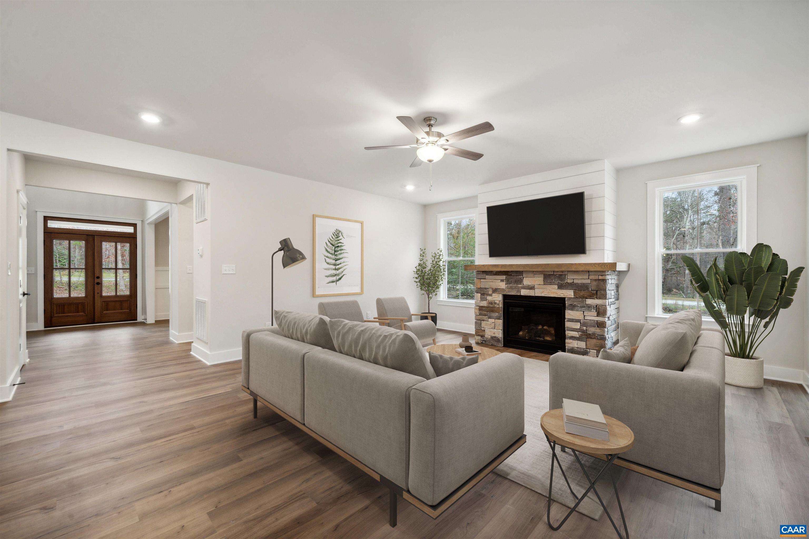 THIS IS A TO BE BUILT HOME! The Crenshaw plan is a stunning and versatile design offering 3,214+ sqft. At the entrance is a stylish Foyer and a Flex Room offering versatile space, leading to a spacious Family Room and Kitchen, featuring an expansive island, generous counter space, and walk-in pantry. Included in the space is a dinette and a pocket office. The first-floor Primary Suite includes an extravagantly sized walk-in closet, and the Primary Bathroom with walk-in tiled shower, dual vanities, and a private water closet. An optional door can connect directly from primary closet to the laundry room. A mudroom is the ideal drop zone when entering into the two-car garage. The second floor features a loft overlooking the foyer below, three additional bedrooms, (two with walk-in closets), and centrally located hall bath. There are countless options to customize the space to suit your lifestyle. This home can be built in Compass Cove, a charming new water-access community on the private side of Lake Anna where select homesites include a deeded boat slip, making it easy to enjoy boating, fishing, and the best of waterfront living. Pictures are for advertising purposes some options may not be included in the advertised price.