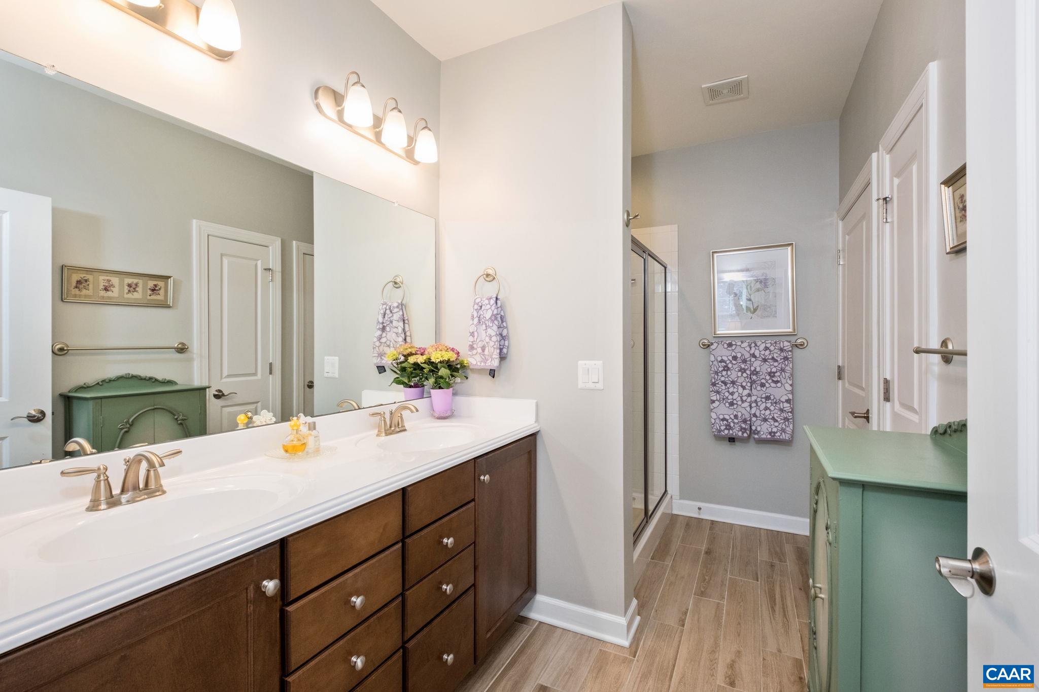 Experience effortless one-level living in The Villages at Nahor, a welcoming 55+ community offering pool, clubhouse, fitness room, lawn care, and snow removal for truly maintenance-free living. Step inside to a light-filled open floor plan highlighted by soaring vaulted ceilings and a spacious, airy feel. The upgraded kitchen features abundant cabinetry, a pantry, and beautiful granite countertops, providing generous prep space for any home chef. Just off the living room, the deck offers the perfect setting for grilling or relaxing outdoors. The main level includes a spacious primary suite with walk-in closet and private bath featuring double vanities and a separate water closet. A second bedroom with attached bath provides flexibility as a guest room, home office, or cozy den. The full-size laundry room, complete with utility sink, conveniently connects to the oversized two-car garage. Downstairs, you’ll find a large family room with an inviting sitting area, walk-out access to a private patio and backyard, plus an additional bedroom and bath ideal for guests. A sizable unfinished storage room offers potential for future expansion. All within a short walk to community amenities and just minutes to shopping, I-64, and C'ville!