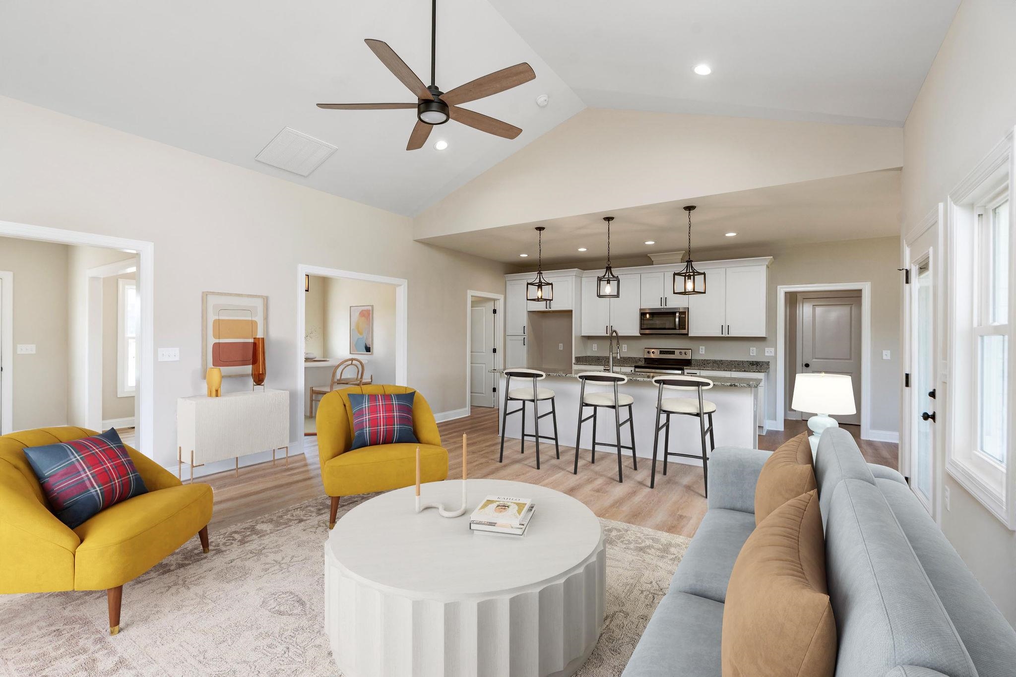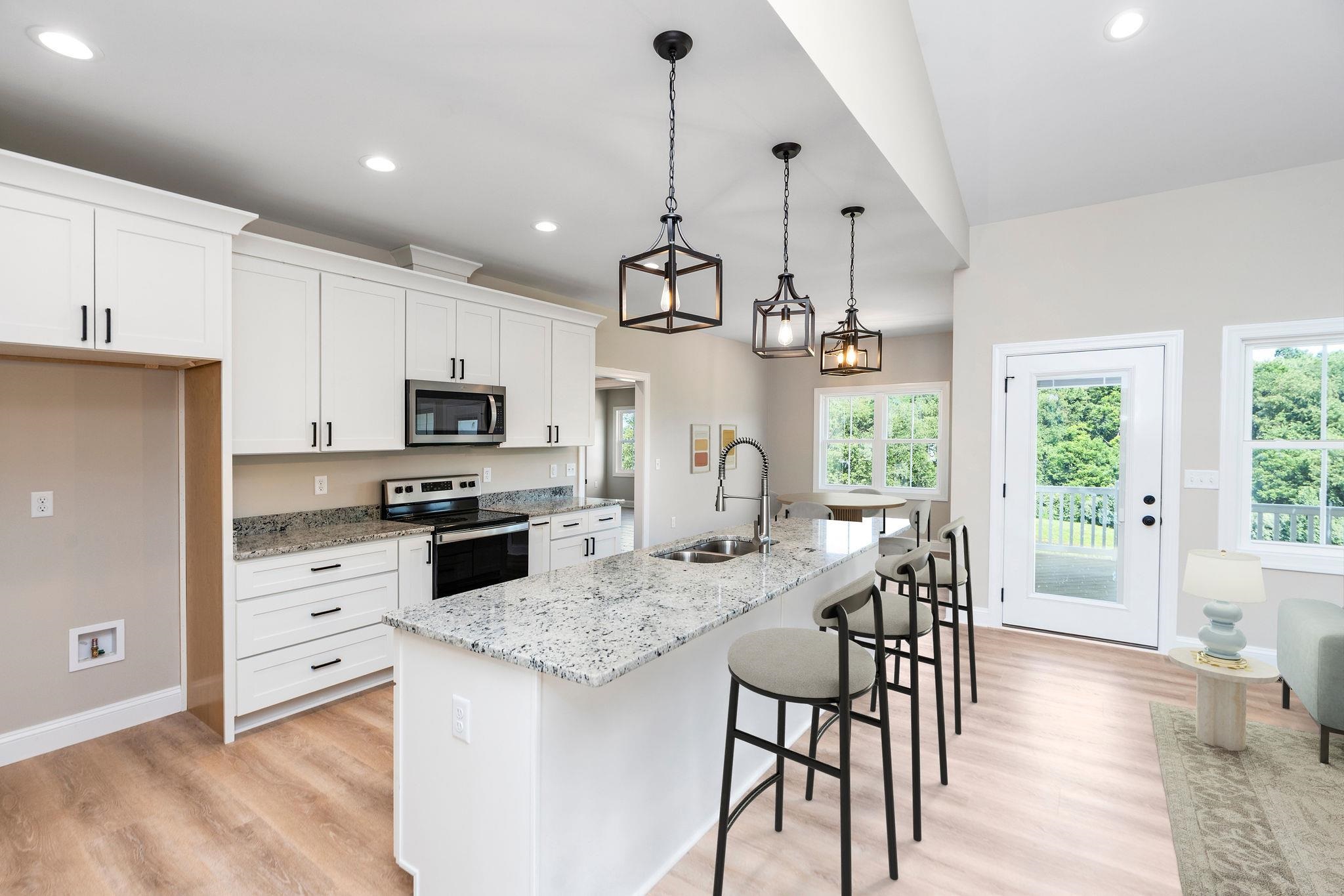 YOUR NEXT MOVE STARTS HERE! This beautifully designed new home delivers clean lines, thoughtful details, and comfortable living in a sought-after setting. Step from the inviting front porch into a spacious, open layout tailored for both daily life and entertaining. The kitchen stands out with an expansive island, crisp white soft-close cabinetry, and an impressive walk-in pantry. A sunny breakfast nook offers the perfect start to your day, while the formal dining space is ready for celebrations and gatherings. The generous great room extends to a covered rear porch overlooking mountain views and a roomy backyard. The primary suite provides a private escape with dual sinks, porcelain tile flooring, a sleek glass shower, and a large walk-in closet. Two additional bedrooms—each with walk-in closets—share a well-designed bath with double vanity. Extra linen storage adds convenience. The full walk-out basement is pre-plumbed for a future bath, creating endless potential for added living space, recreation, or guests. Secure this home while it’s underway and make it yours.