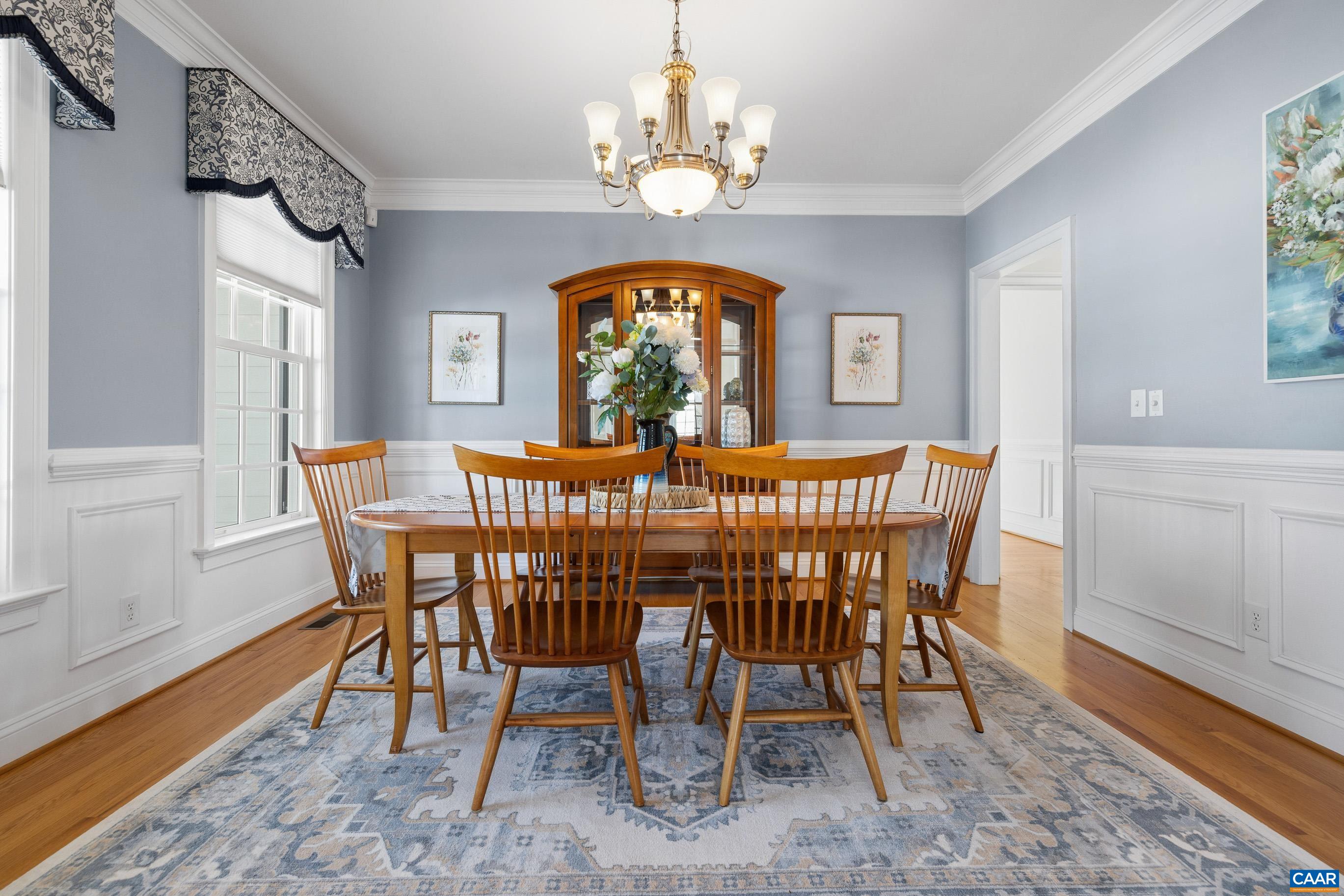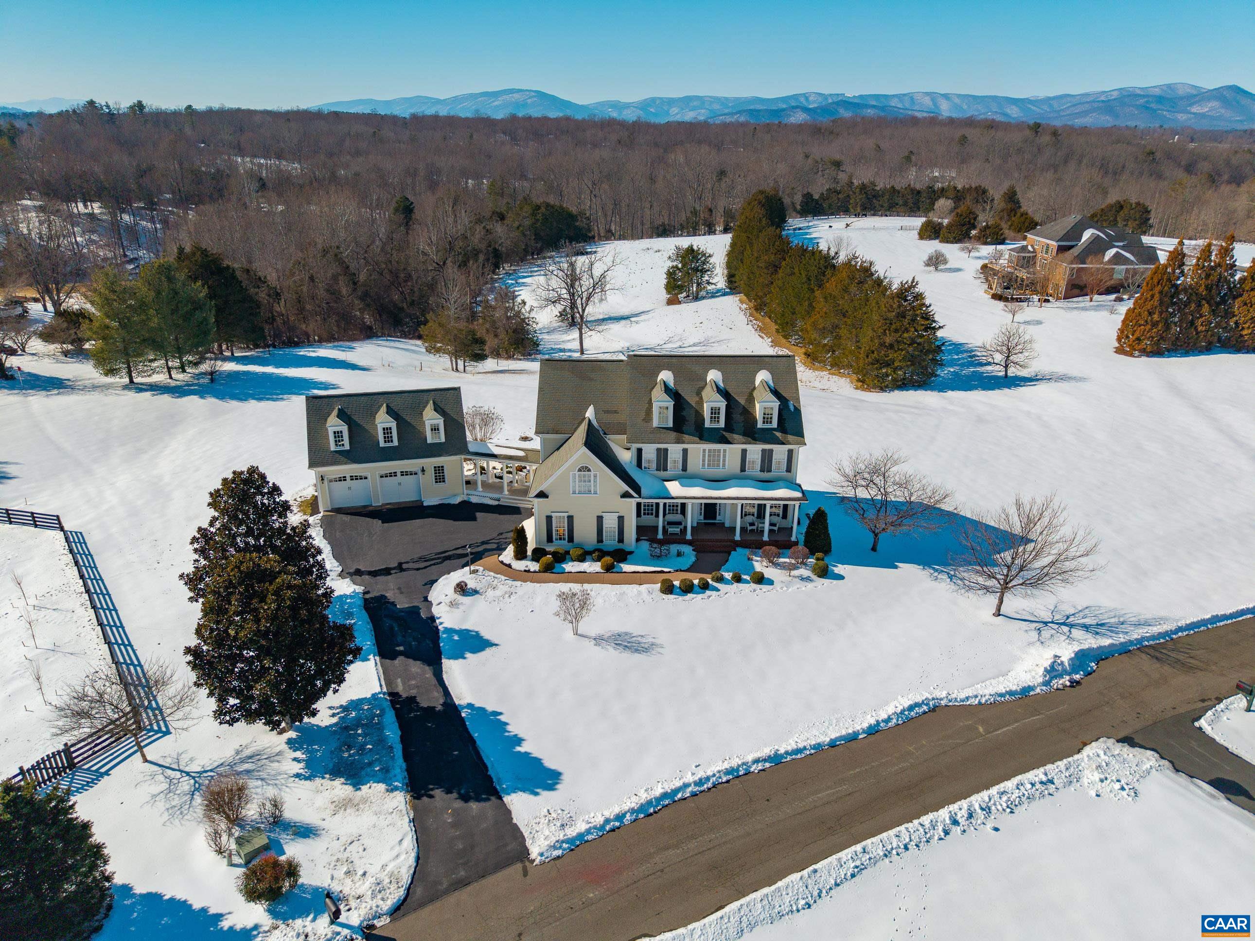 Exceptional offering featuring the perfect blend of space and convenience – moments from UVA, CHO Airport, and the best of Cville! Situated on a manicured 2-acre parcel, this well-maintained home delivers timeless elegance. Two primary suites—one on the main level and another upstairs! The heart of the home is a gourmet kitchen outfitted with high end appliances, cherry cabinets, and granite countertops. Beautiful custom trim and built-in’s through out, two gas fireplaces, flexible spaces, and a formal dining room round out the luxury feel. Upstairs, there’s a suite with sitting area, soaking tub, and walk-in shower. Three additional bedrooms, one with an ensuite bathroom, and a laundry room with large sink. A second laundry room on the main level adds extra practicality. The terrace level provides exceptional accommodations with a private bedroom, full bath, and living room. Storage/expansion opportunities include a full unfinished walk-up attic and an unfinished space above the garage - ideal for future finished space or extensive storage. Under garage includes workshop space! A charming covered breezeway connects the garage to the home. Plenty of privacy, high-end finishes, flexible living spaces, and unbeatable location.