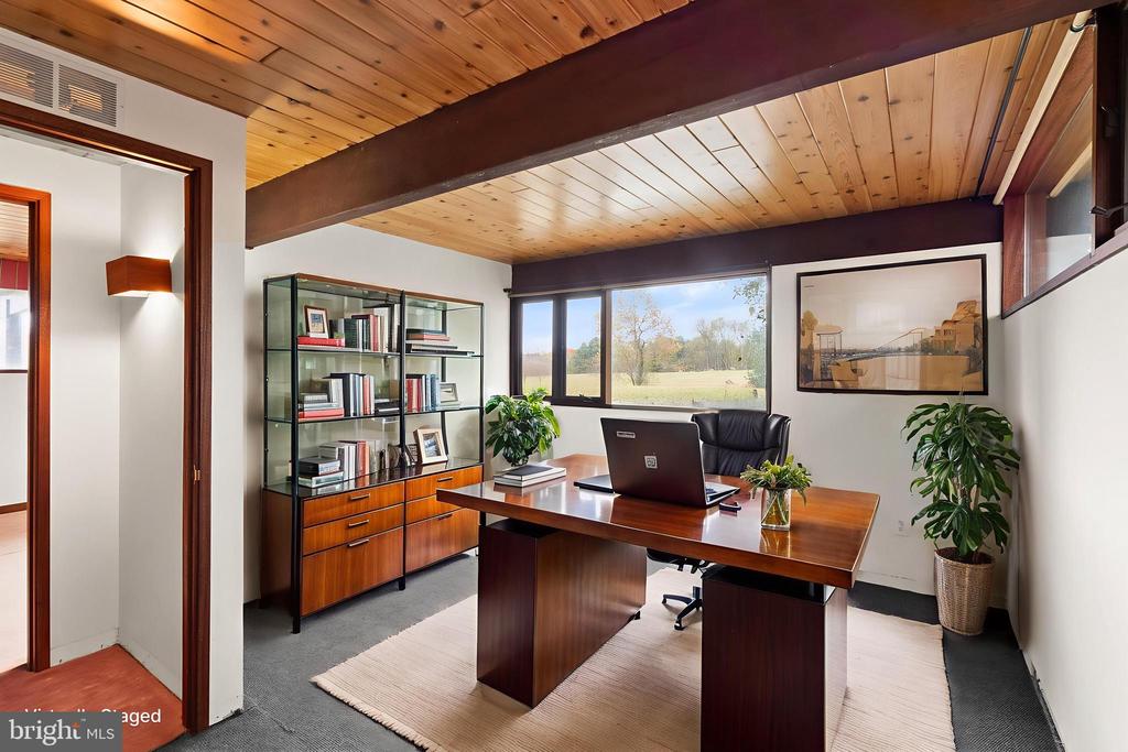 Three purchase options available: Option 1 includes the primary residence on 3.8 acres with an existing workout building offered at $1,000,000. Option 2 includes the home and a 9,200 sq. ft. building situated on 6.7 acres offered at $1,400,000. Option 3 includes the home, 9,200 sq. ft. building, and a fishing shack on an additional 0.75-acre parcel (7.45 acres total) offered at $1,600,000. A rare opportunity to own a custom mid-century modern home on a private 6.7-acre setting in Warrenton, VA””complete with a 9,150 sq. ft. conditioned building and a recreational facility: 775 sq. ft. gym/pool house with a full bathroom. This architecturally unique home features vaulted wood-beamed ceilings, walls of glass, and open living spaces that blend beautifully with the natural surroundings. While the home would benefit from some updates, it offers tremendous potential in an exceptional location. The main level includes a dramatic great room with panoramic views, a floor-to-ceiling brick fireplace, and access to an oversized deck perfect for entertaining or enjoying peaceful sunsets. The open kitchen features natural wood cabinetry and a center island, offering an excellent template for modern upgrades. The walk-out lower level provides fl
