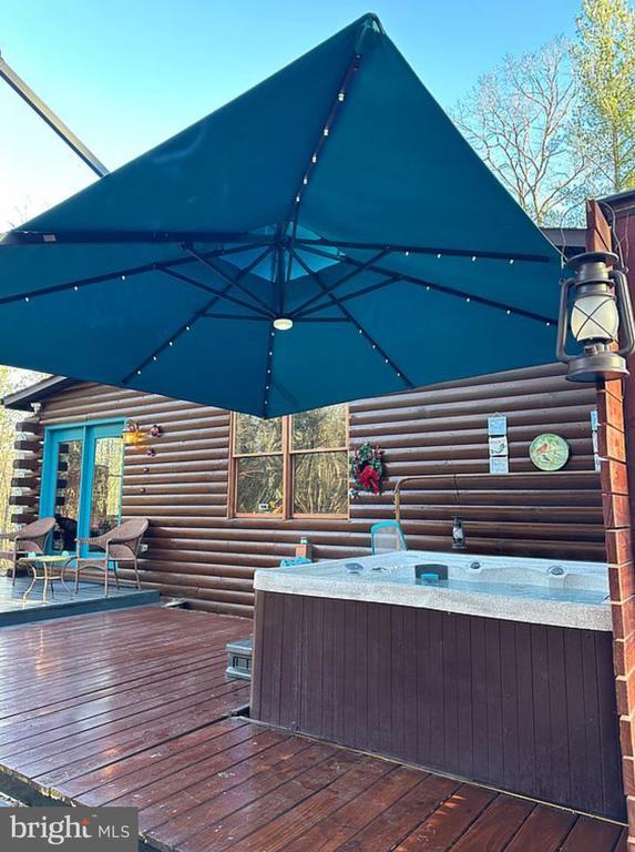 **Charming Log Cabin Retreat on Over 4 Acres of Nature's Paradise** Welcome to your dream log cabin nestled in a serene, private wooded area. Built in 2005 and meticulously maintained, this enchanting property offers peace and tranquility on an expansive 4.07-acre lot. This log cabin home features 1,080 square feet of comfortable living space with 2 cozy bedrooms and 1 well-appointed bathroom. Delight in a fully updated kitchen with brand-new appliances, perfect for culinary adventures. Stay cozy as the owner recently had a new heat pump system installed in 2024. Step outside onto your inviting deck, complete with a relaxing hot tub, the ideal spot for unwinding in nature and embrace the captivating sights and sounds of the local wildlife that is frequent in the area. Outside your backyard you can explore your own private walking path leading to a thoughtfully cleared camping site, perfect for stargazing and enjoying peaceful nights under the stars. This log cabin offers the perfect blend of rustic charm and modern comforts, making it an idyllic retreat for nature lovers and those seeking a peaceful sanctuary. Don't miss this unique opportunity to own a piece of woodland paradise. Selling as-is.