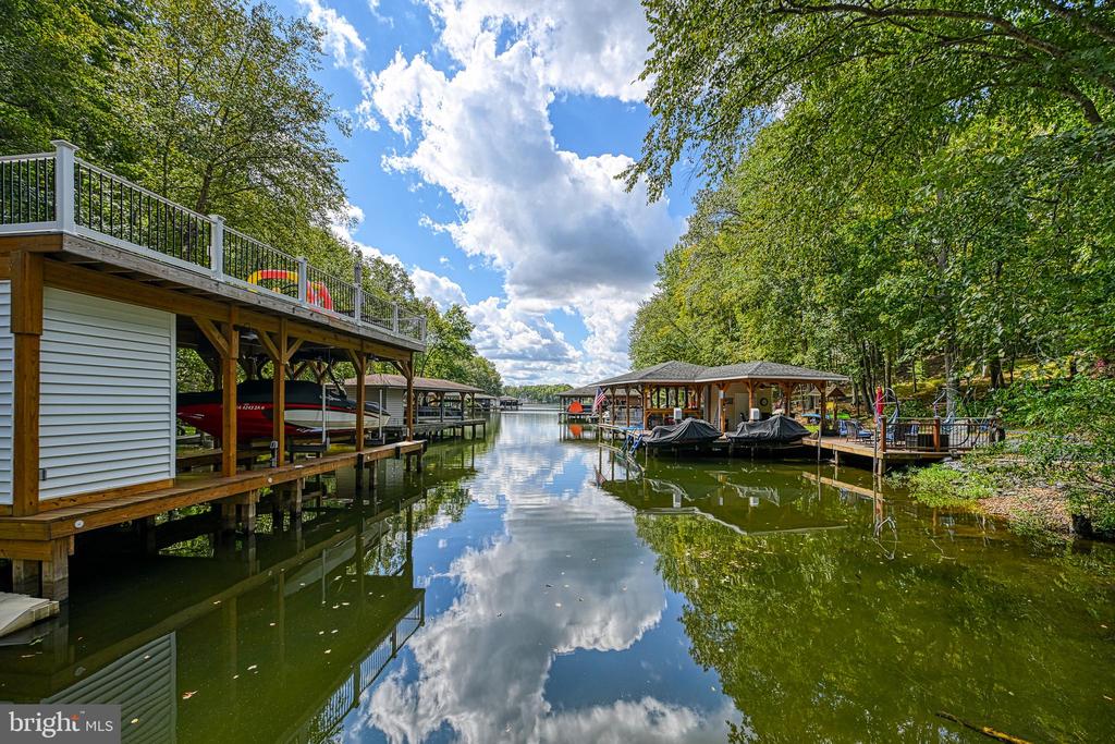 Amazing Waterfront Home on 1.5 acres in premier Magnolia Harbour neighborhood is a MUST SEE! Over 4200 sq ft of finished living space plus over 1700 sq ft of additional unfinished space awaiting in the walkout basement. Located mid-lake on Lake Anna's public side, this 6 bdrm-6½ bath home (3 bdrm septic) is nestled in the back of a cove. A two-level single slip boathouse (w/ electric hoist) offers a spacious 2nd story sunning and observation deck which provides long views to the main lake. The contemporary layout of this home boasts an expansive open concept across the family room, kitchen, and eating nook with loads of natural light and views of the lake. This home is awesome for entertaining and/or vacation rental as it offers four Primary Suites and two additional bedrooms sharing a Jack-and-Jill bath. Bedrooms with walk-in closets. This home is loaded with many upgrades including authentic Australian Cyprus hardwood (known for durability and density), a To-Die-For spa/shower featuring steam, aroma therapy, massage, and built-in music; 2 baths with advanced vanity mirrors with dimmable LED lighting and anti-fog mirror systems, 2 Rinnai tankless water heaters, Trex decking, over-sized 3-car attached garage, an extra-large rear