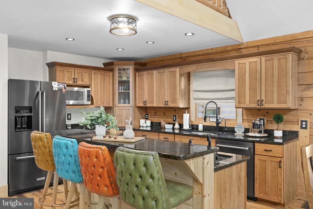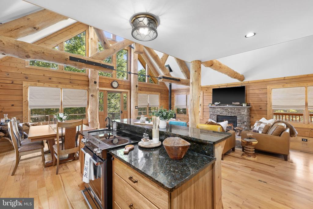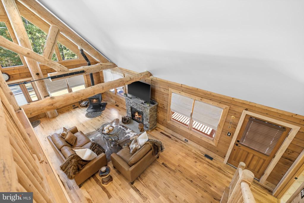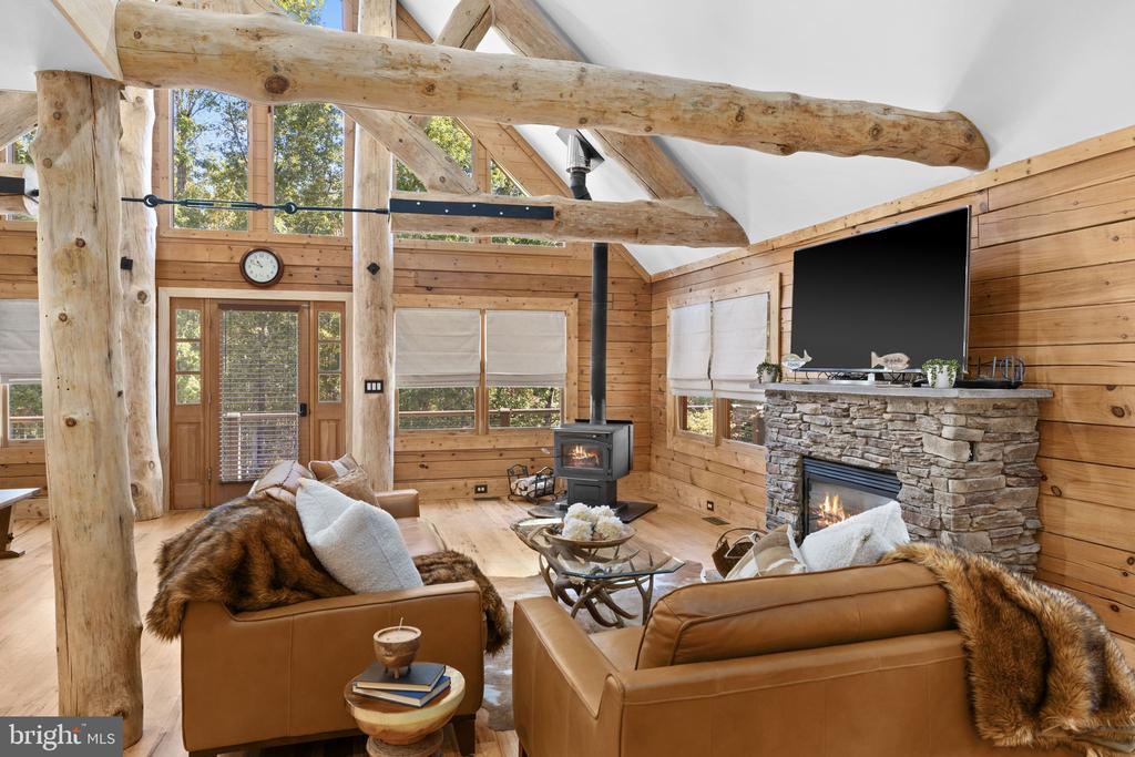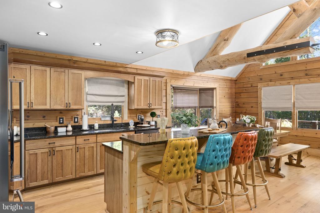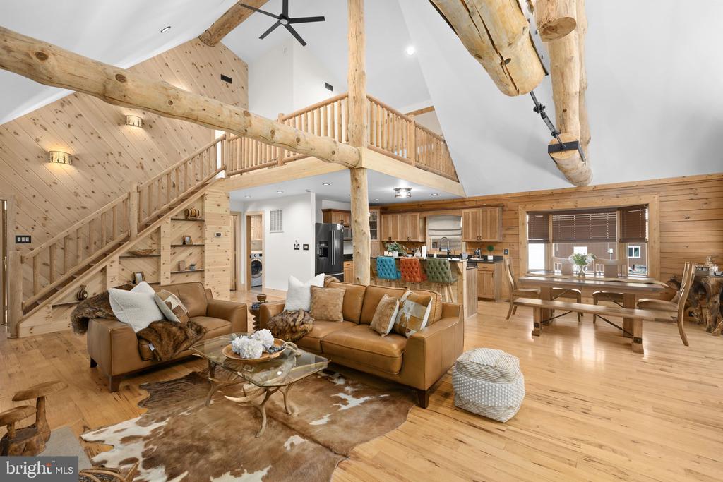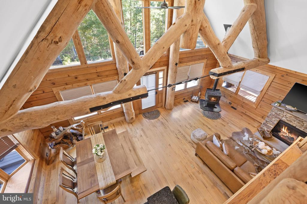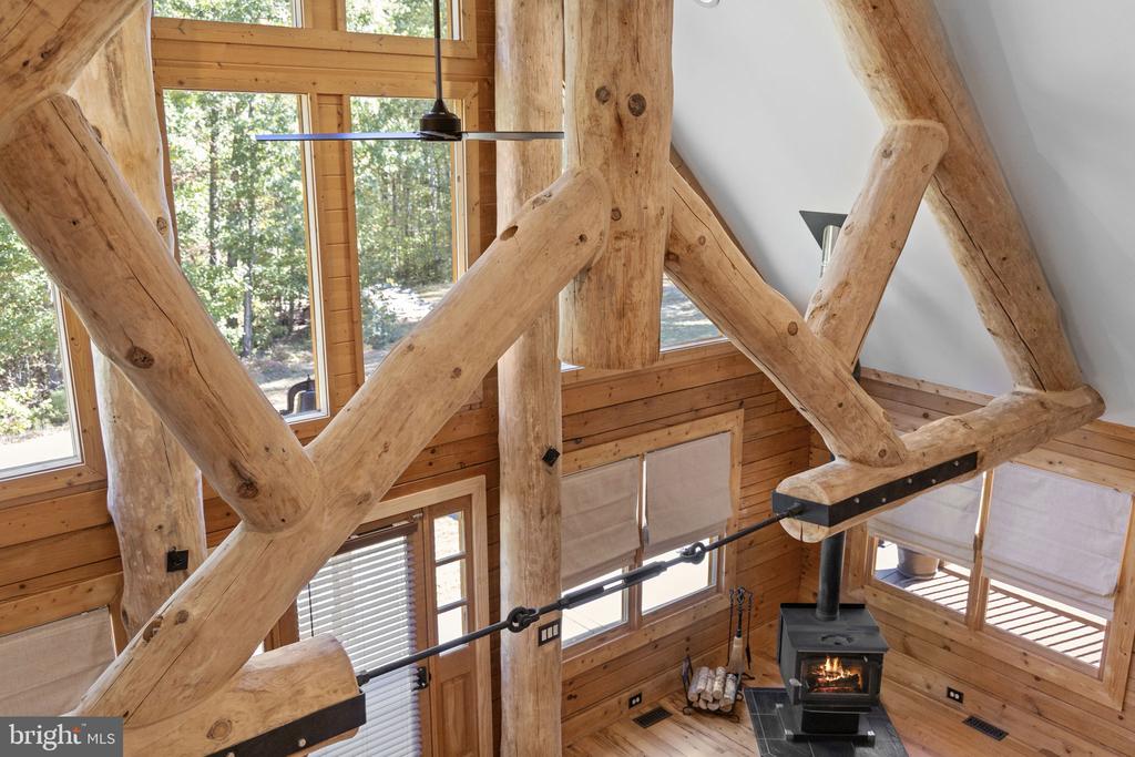 Discover the epitome of luxury living in this breathtaking custom Craftsman home, meticulously updated with an array of bespoke features that redefine modern comfort and elegance. Nestled on eight pristine acres with established walking trails and located within a serene subdivision””free from HOA restrictions””this property offers a unique blend of tranquility and sophistication. As you step through the vaulted entrance you will notice an antique cast iron bell, the resonating sound will welcome family and guests as they arrive. Upon entering you will be greeted by soaring beam ceilings, custom wood trim, and stunning shiplap walls that exude warmth and character. The open floor plan seamlessly connects the spacious great room, adorned with a cozy gas fireplace and a charming freestanding wood stove, to the expansive kitchen and dining area. The ambiance is elevated by all-new custom lighting, creating an inviting atmosphere perfect for both entertaining and relaxation. The heart of the home””a beautifully updated kitchen””features brand new appliances and ample counter space, making it a culinary dream. The first-floor primary suite is a sanctuary of comfort, complete with it's own private bath & large walk-in closet. Upstairs,