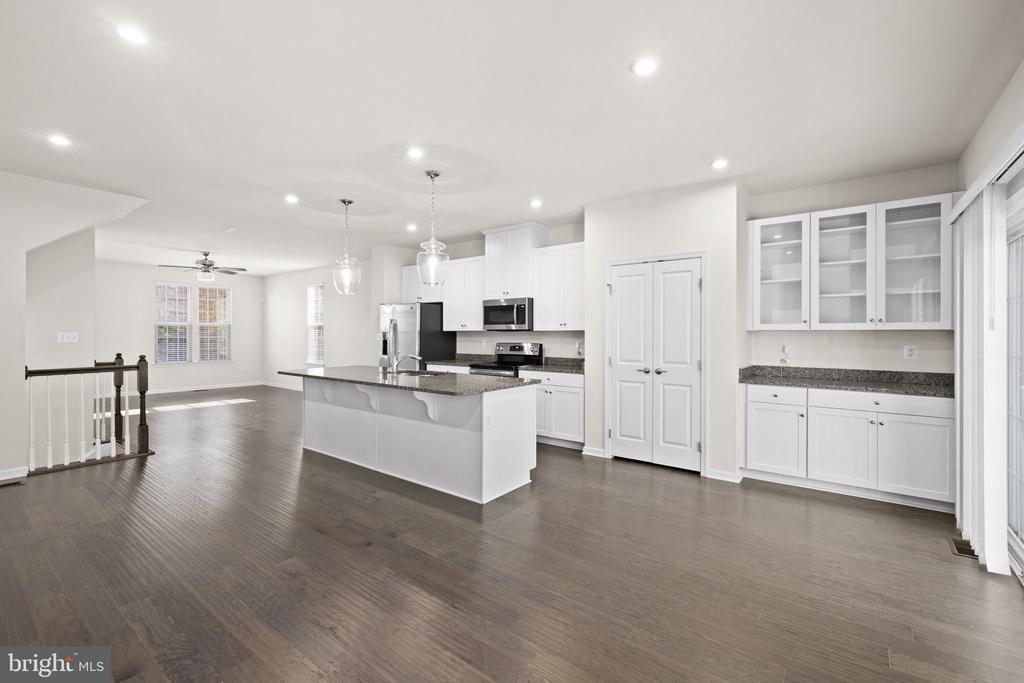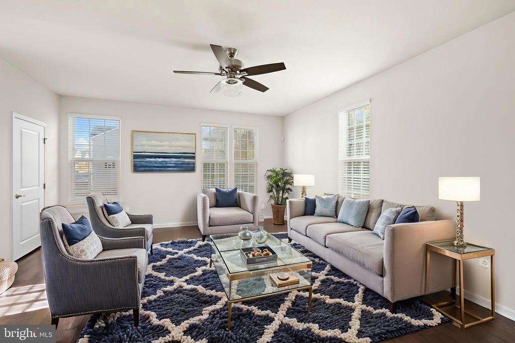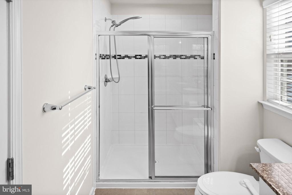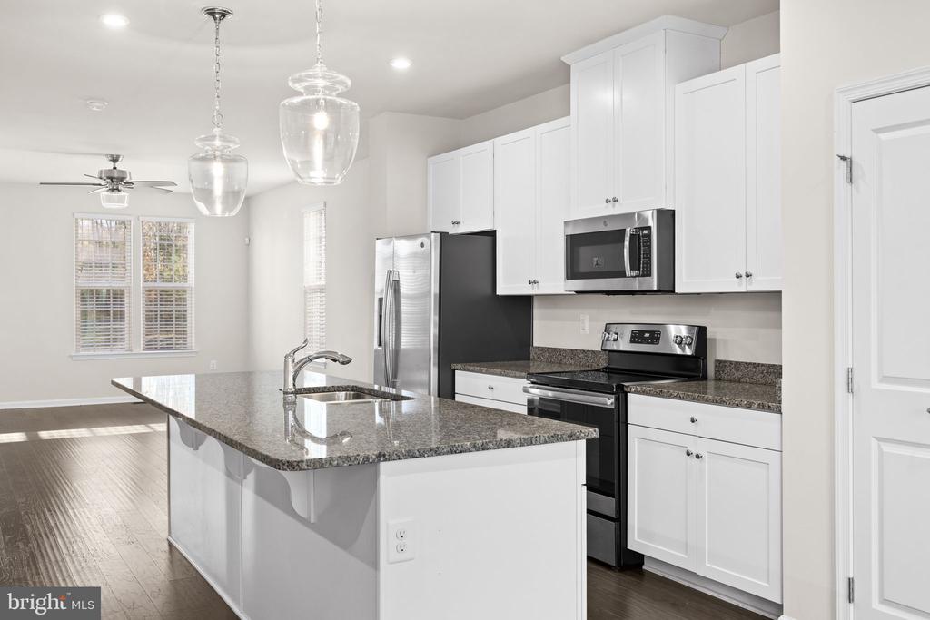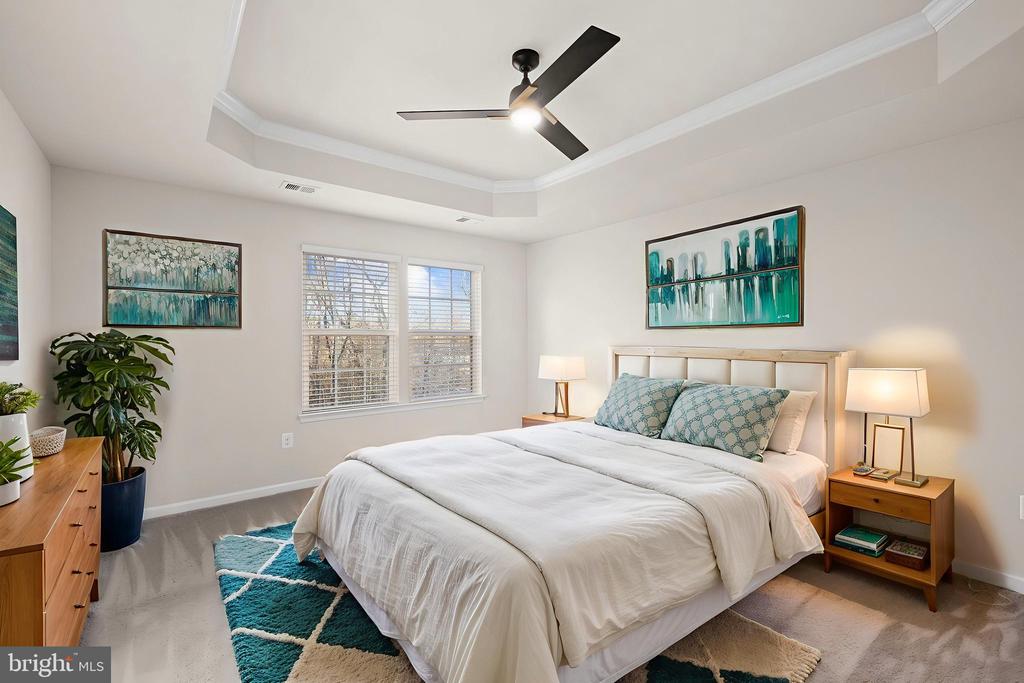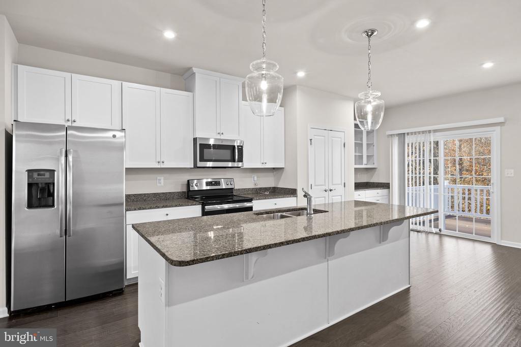 Welcome to 8600 Wilmore Lane, an immaculate end-unit townhome loaded with upgrades and thoughtfully designed spaces throughout. The entry level features a spacious bedroom or recreation room complete with a private full bath, dual walk-in closets, and its own walk-out entrance leading to a rear patio and a charming wraparound walkway. The open-concept main level boasts gorgeous wood floors, a stunning center island kitchen with granite countertops, pendant lighting, and ample seating. Enjoy generous dining and living areas, an additional powder room, and access to the composite deck with vinyl railing””perfect for grilling, relaxing, or entertaining with serene, tree-lined views. Upstairs, the home offers a luxurious primary suite featuring a walk-in closet and an attached bath with a dual vanity, separate shower, and a deep soaking tub. Two additional well-sized bedrooms, another full bath, and a dedicated laundry area with convenient storage cabinetry complete the upper level. Additional highlights include a one-car garage plus a driveway accommodating up to two more vehicles. Located in the desirable Village at Courthouse Commons, residents enjoy fantastic community amenities such as a swimming pool, playground, sidewalks, and